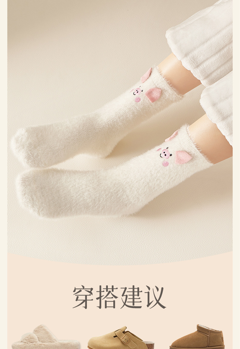 Autumn and Winter Sleeping Socks Fleece-lined Warm and Cute Cartoon Home Confinement Socks Female Zhuji Coral Velvet Tube Socks