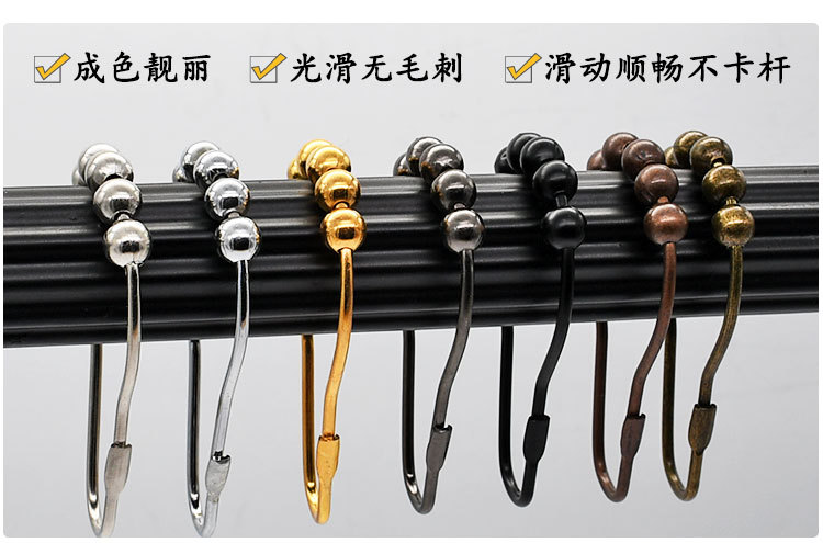 Suspender buckles ball metal window accessories five beads bath curtain hook stainless steel color shower curtain hook