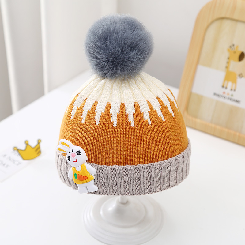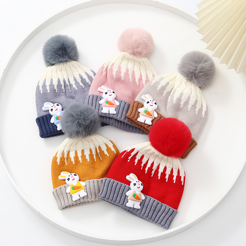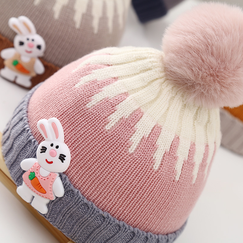 Single ball jacquard rabbit baby wool hat