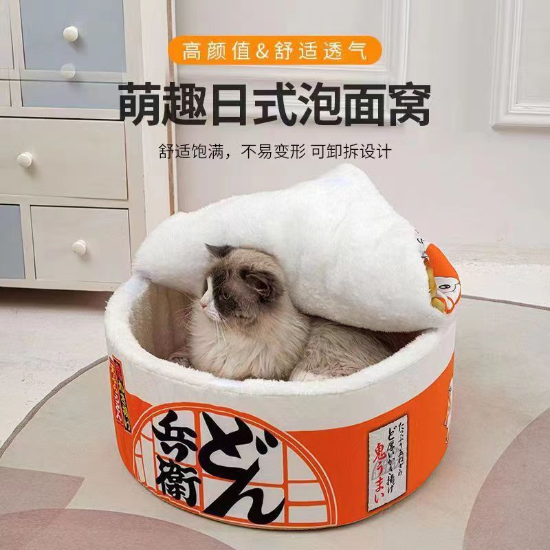 factory direct sales cathouse doghouse japanese style instant noodles round closed pet bed pet bed winter warm one piece dropshipping 中文版