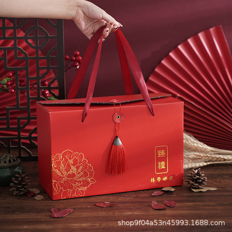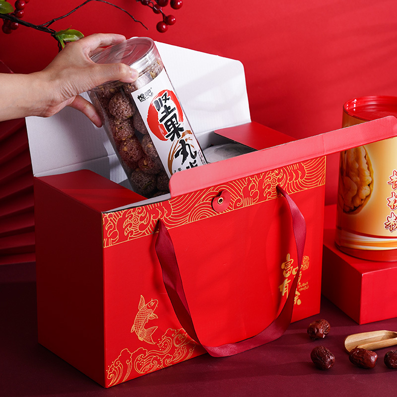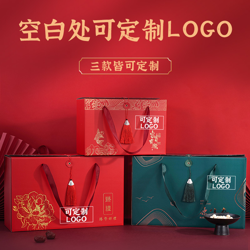New Year Gift Box Box Honey Tea Nuts Red Dates Shanzhen High-End New Year Gift Bag Handbag in Stock