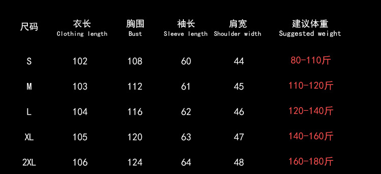 | XXL | ¥180.0 | 999999 piece available |