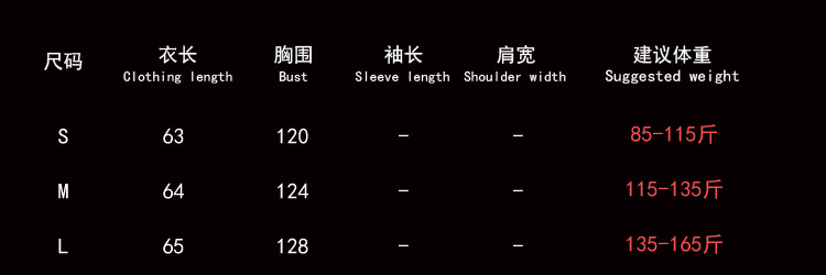 | XXL | ¥150.0 | 3214 piece available |