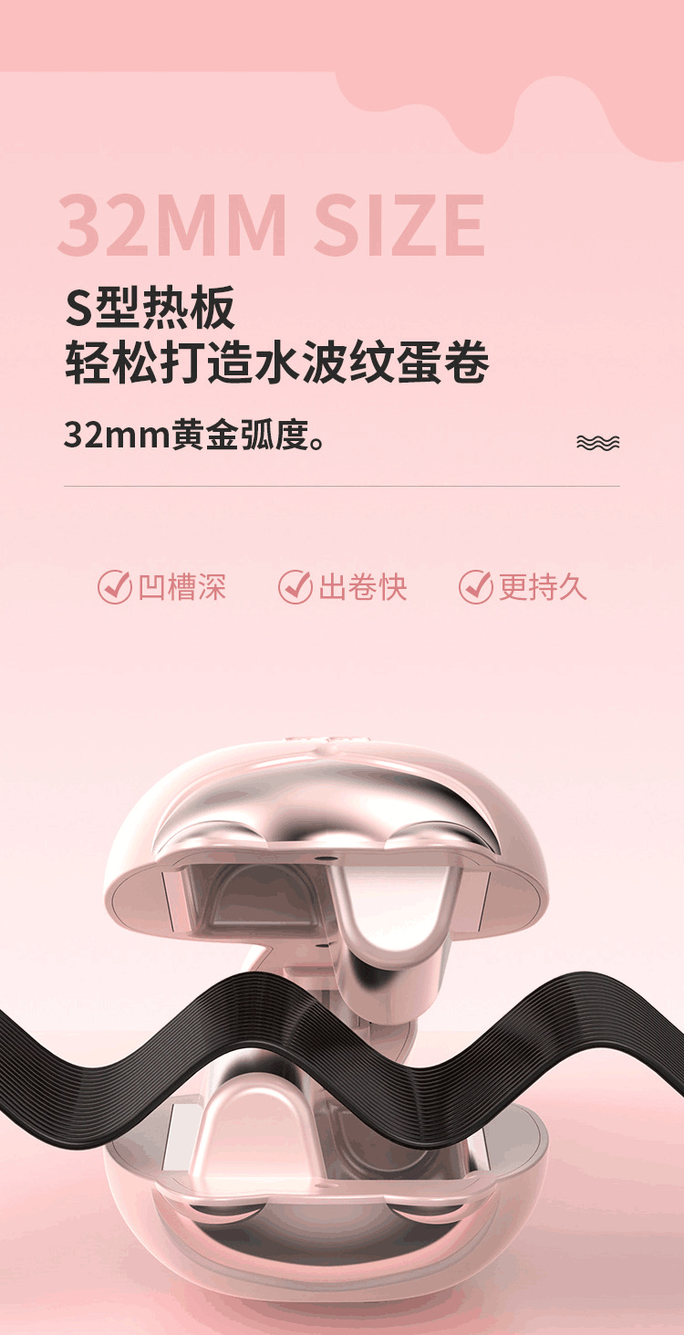 Cross-Border Source New Style Adorable Hair Curler 32mm Water Ripple Egg Roll Korean Style Waves Roll Hair Curler Egg