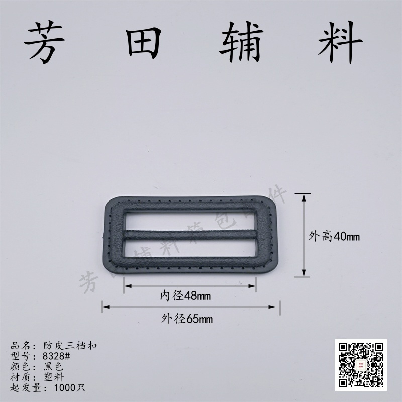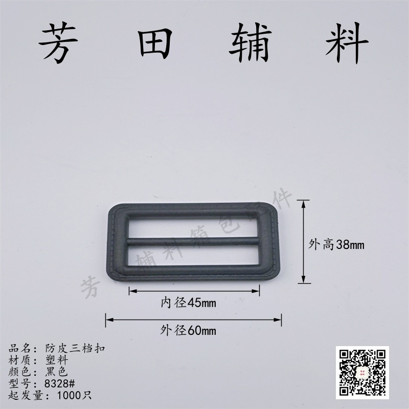 【Product Model】: 8328# Product Size": 45, 48mm inner diameter anti-skin three-stage buckle 【Product Material】:Plastic 【Product Color】: Black Eco-friendly Material |