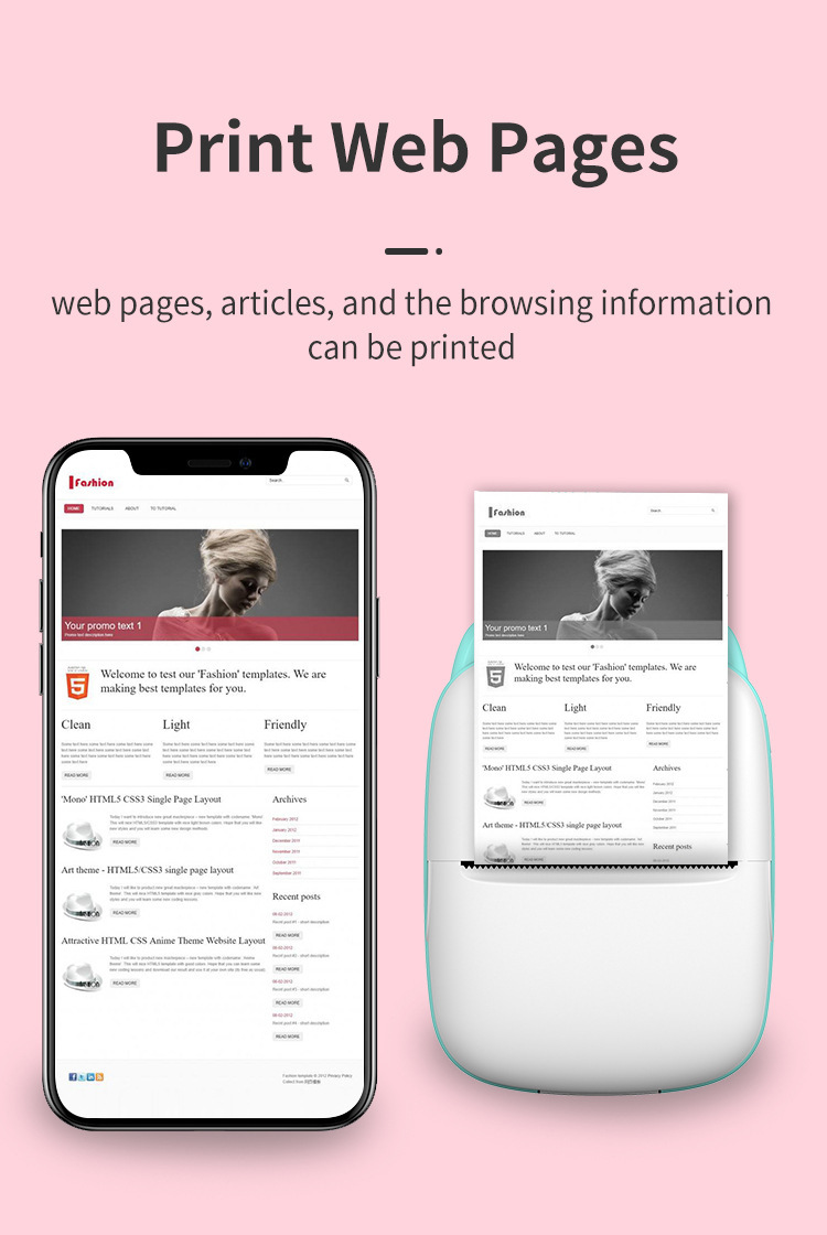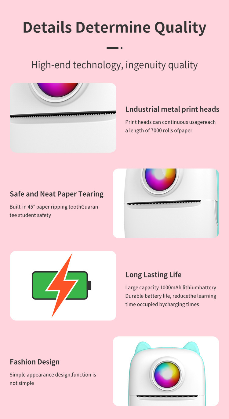 Connection method: Bluetooth wireless, ink-free black and white printing