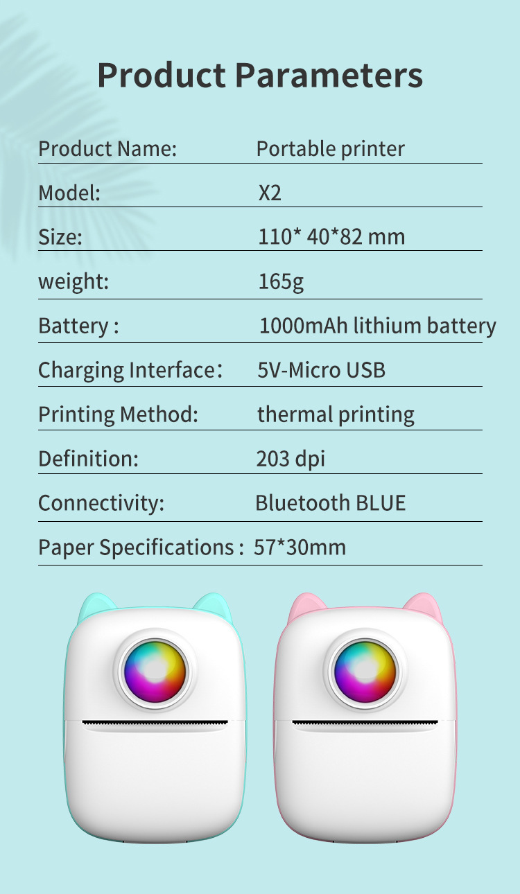 Printing Paper: 57X25mm/57X28mm/57X30mm Please purchase original printing paper for convenient replacement.