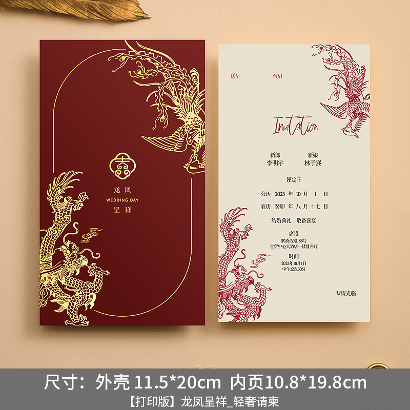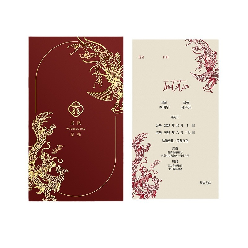 [from 30 copies] prosperity brought by the dragon and the phoenix_light luxury invitation card