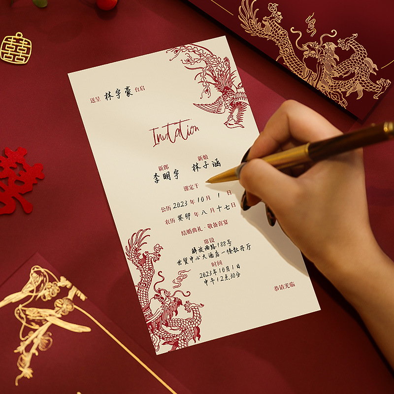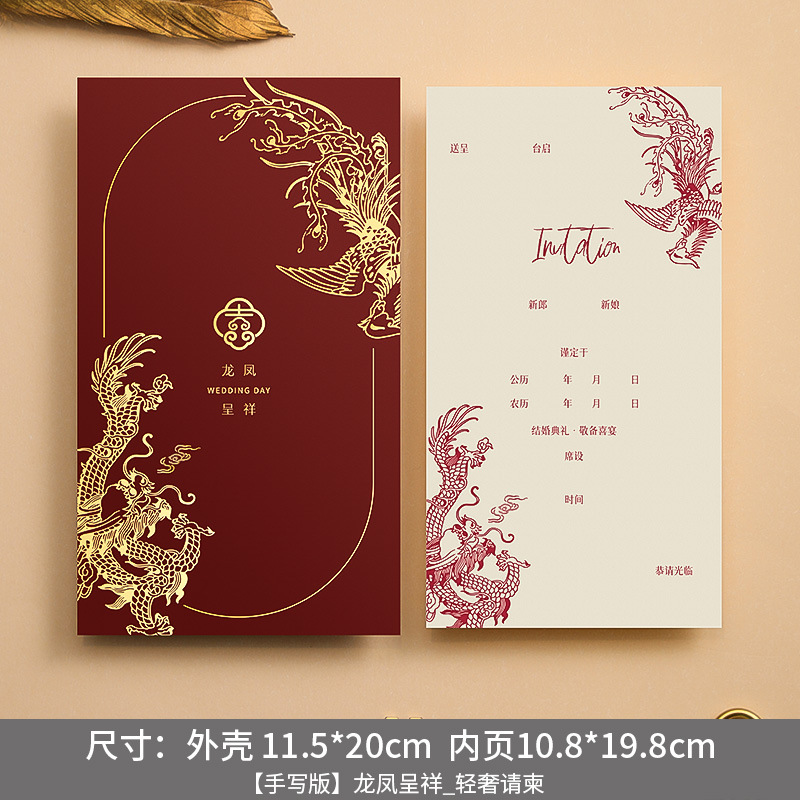 [handwritten version] prosperity brought by the dragon and the phoenix_light luxury invitation card