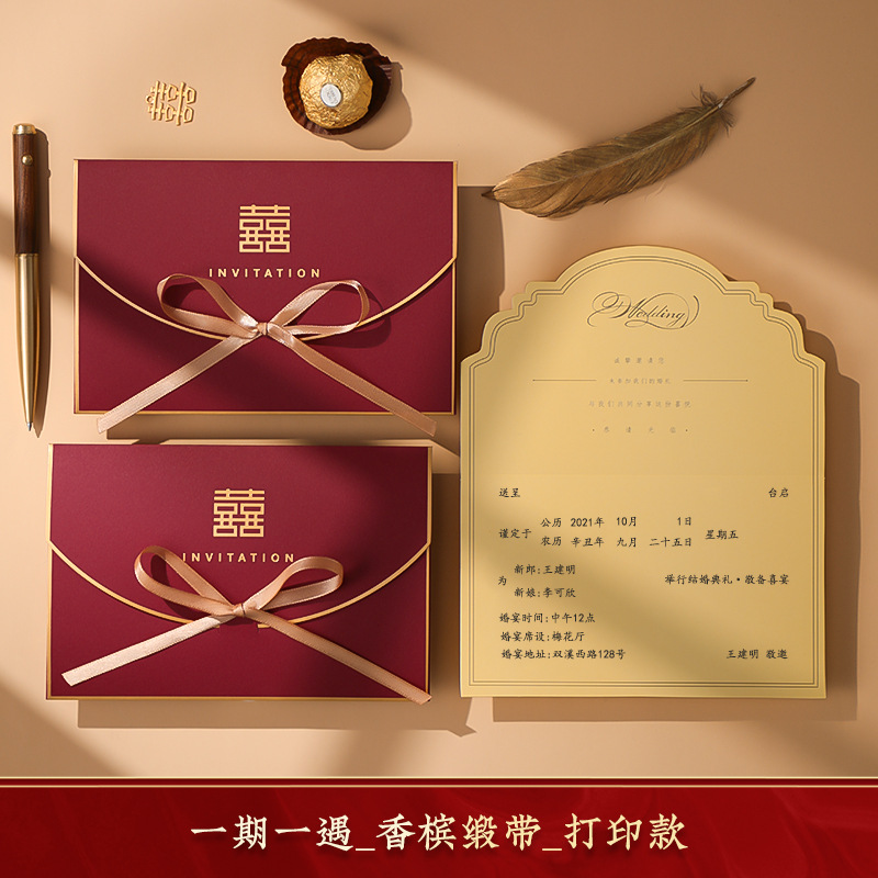 Wedding Invitations - Stock Available 2023 Chinese-style Retro Matte Gold Wedding Invitations Wedding Invitation Printed Wedding Invitations 2023 New Wedding Invitations Customized High-end Atmosphere Wedding Invitation Wedding Ceremony Invitation Wedding Supplies