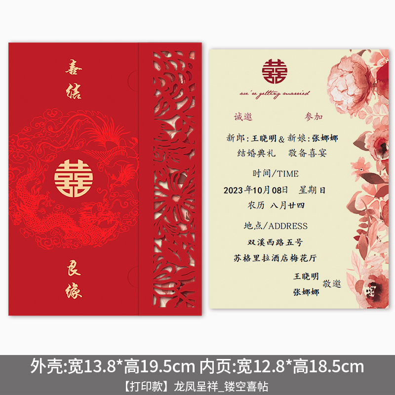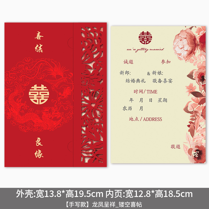 [handwritten version] prosperity brought by the dragon and the phoenix_hollow invitation