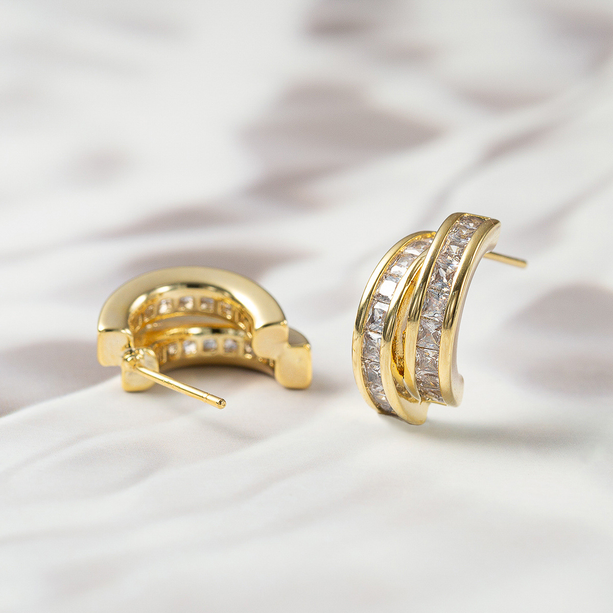 new fashion all-match simple personality elegant copper gold-plated zircon silver needle light luxury c- shaped ear studs gift for ladies