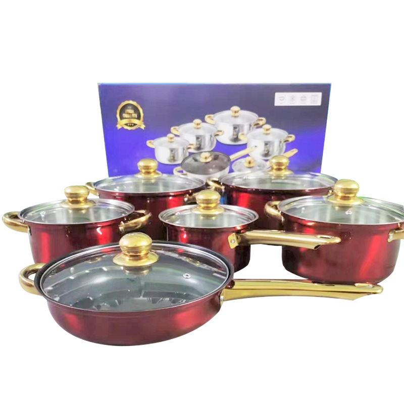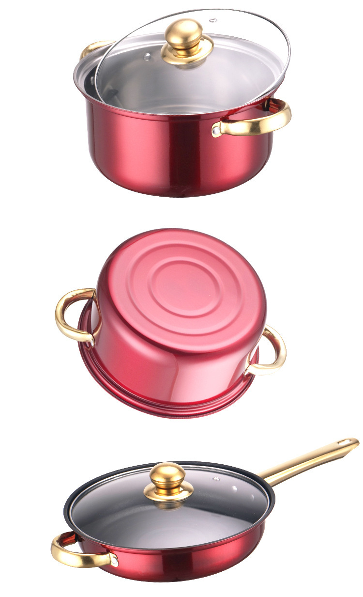 wine red stainless steel pot type a (12-piece pot set 16cm/18cm/20cm/22cm/2