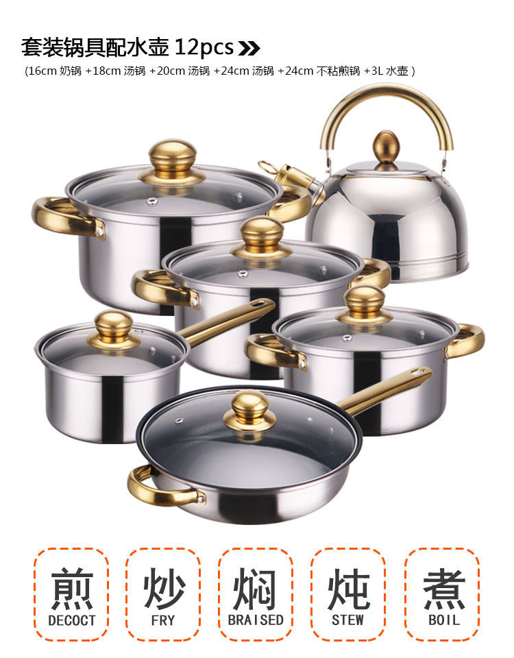 stainless steel pot type a (no non-stick frying pan)(12-piece pot set 16cm/18cm/20c