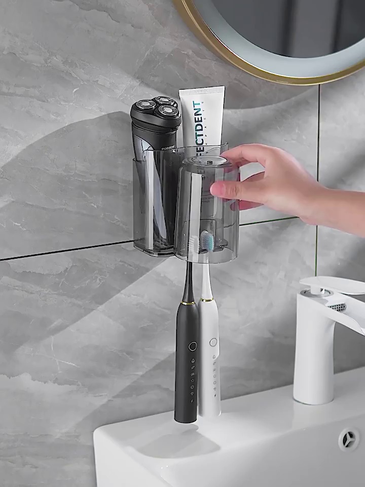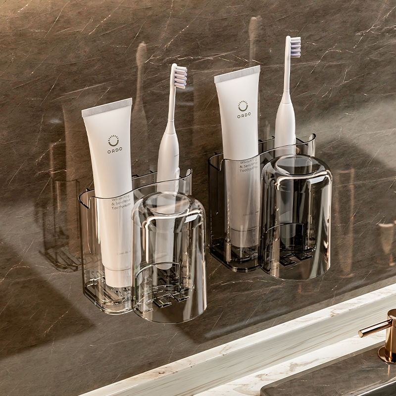 Toothbrush and Cup Shelf Rack Punch-Free Light Luxury Toilet Cup Wall-Mounted Toothpaste Cup Storage Rack