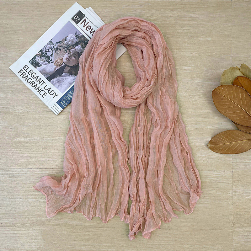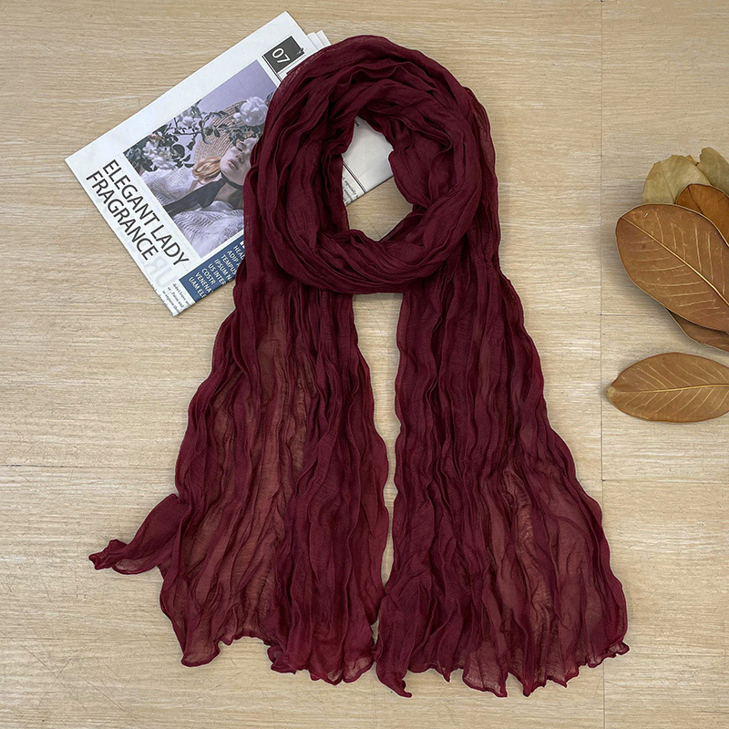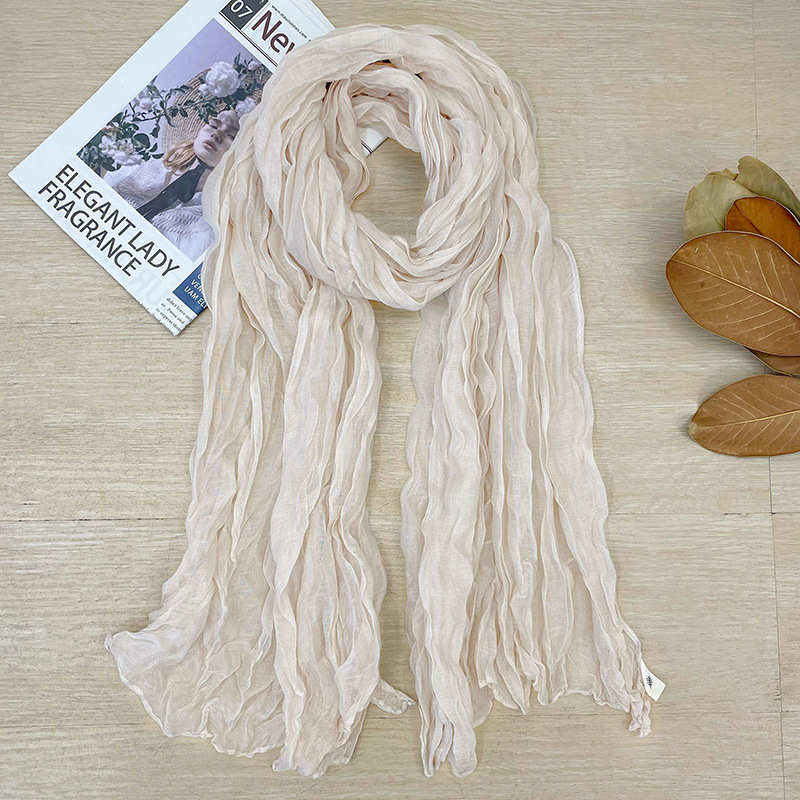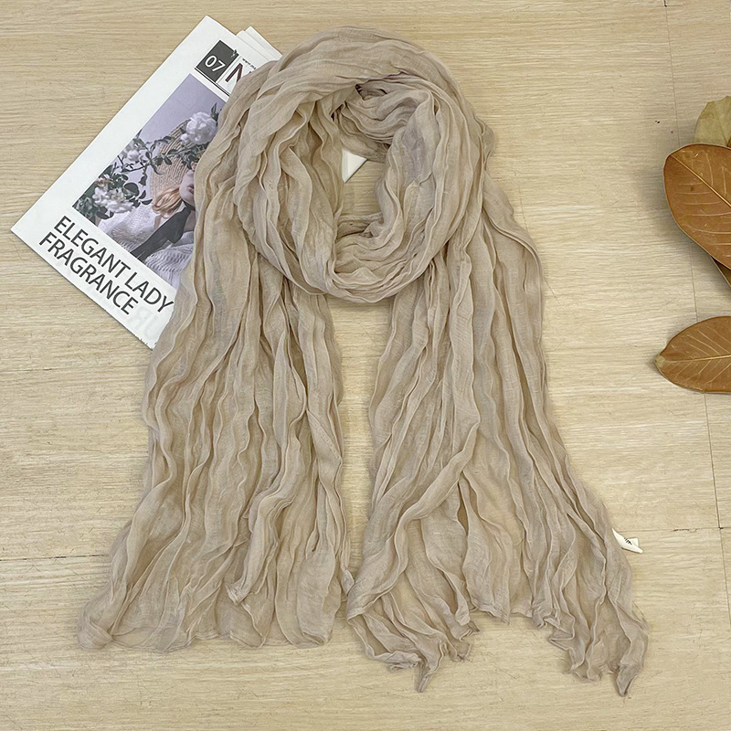 korean style new artistic vintage crumpled cotton and linen solid color scarf women's spring and autumn outer shawl