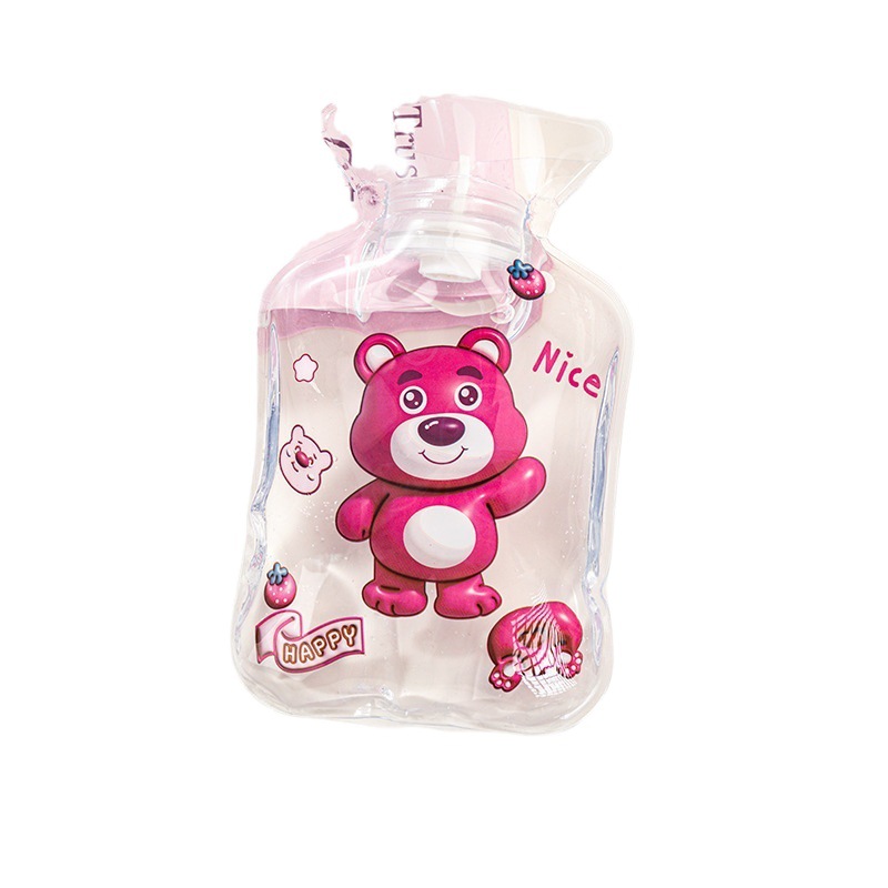 Strawberry Bear Cute Transparent Hot Water Bag Cartoon Warm Body Hot-Water Bag Water Injection Portable Factory Wholesale Winter Student