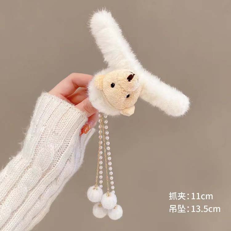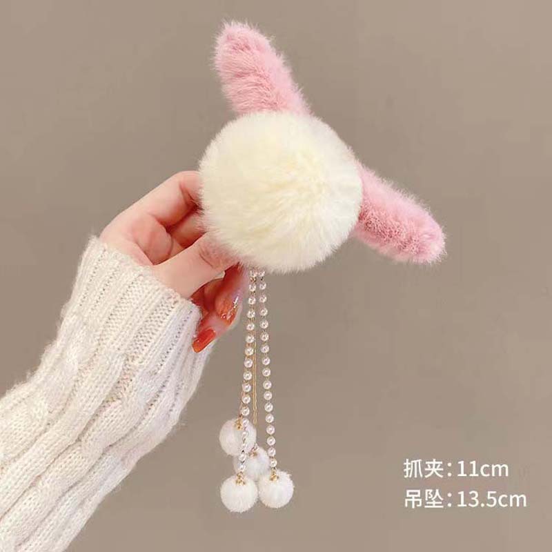 bow tie white plush tassel grip