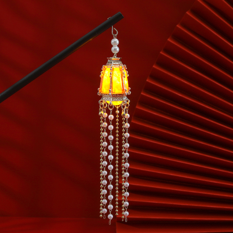 golden handheld lantern red beads (with lights)