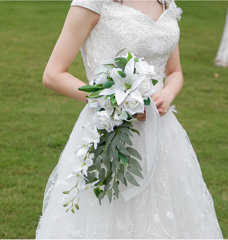 mori style water drops bridal bouquet high-grade wedding waterfall bridal bouquet pastoral style large bouquet