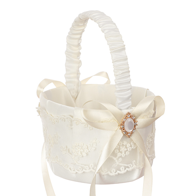 wedding satin flower girl basket bride ring pillow set european wedding ivory white portable flower basket square ring setting