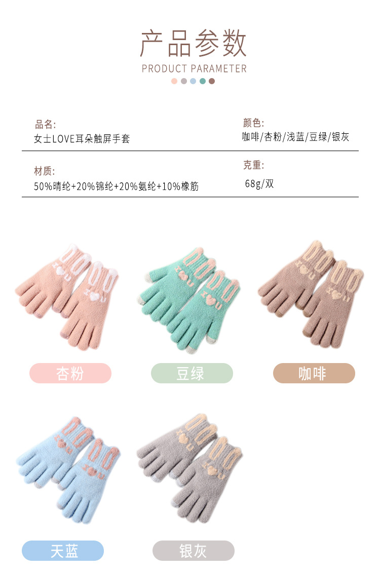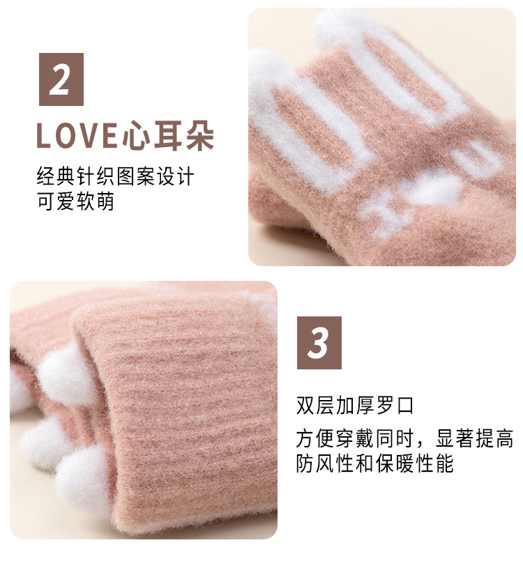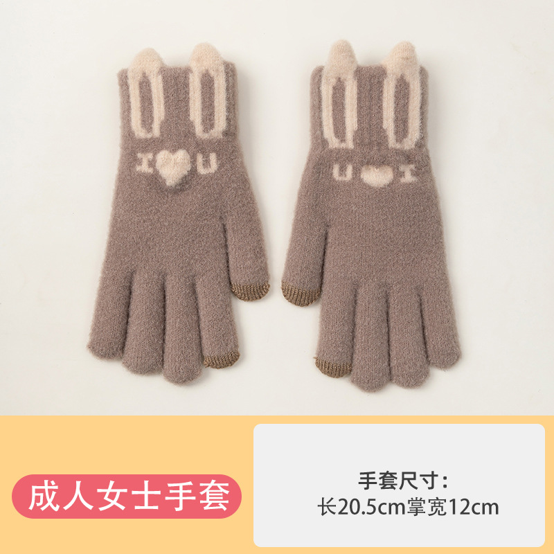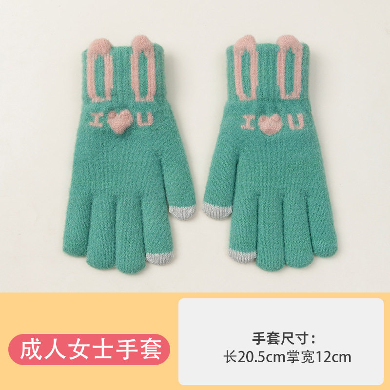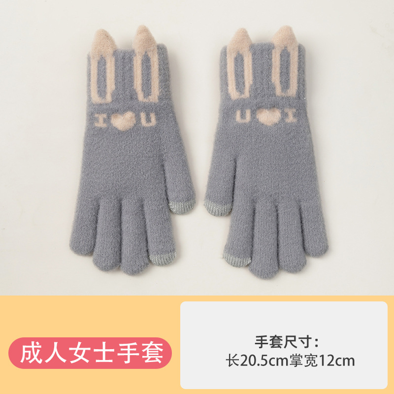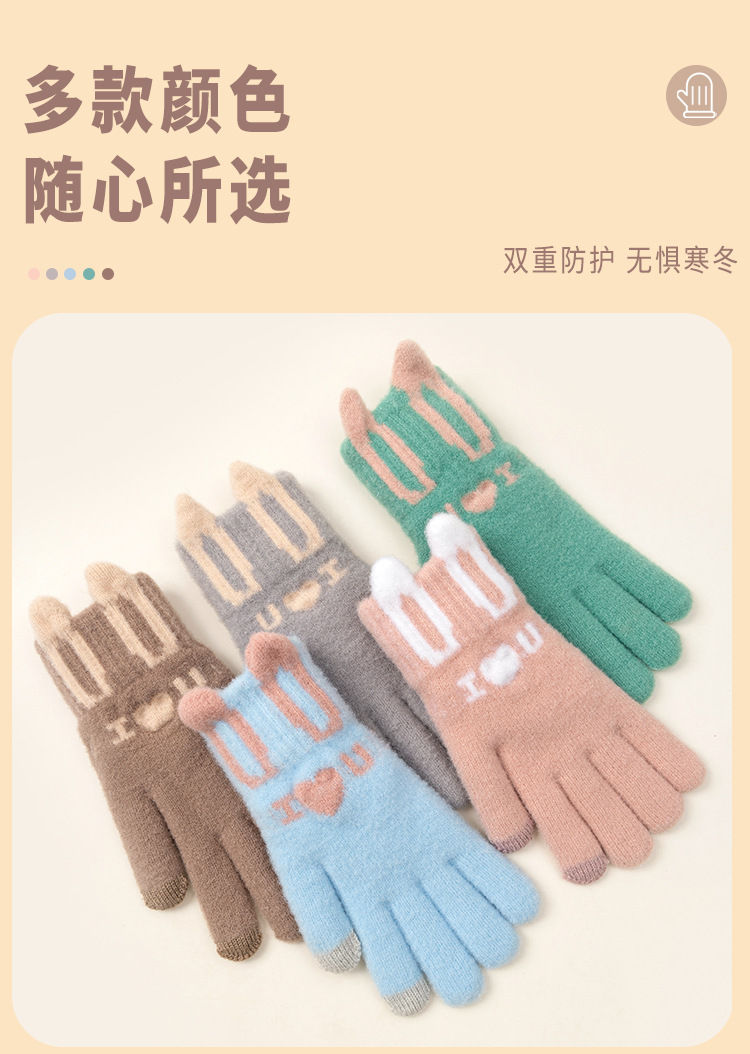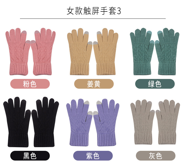Knitted Warm Gloves for Women Winter Fleece-Lined Thickened Cold Protection Cute Riding Touch Screen Wool Student Five Finger Wholesale
