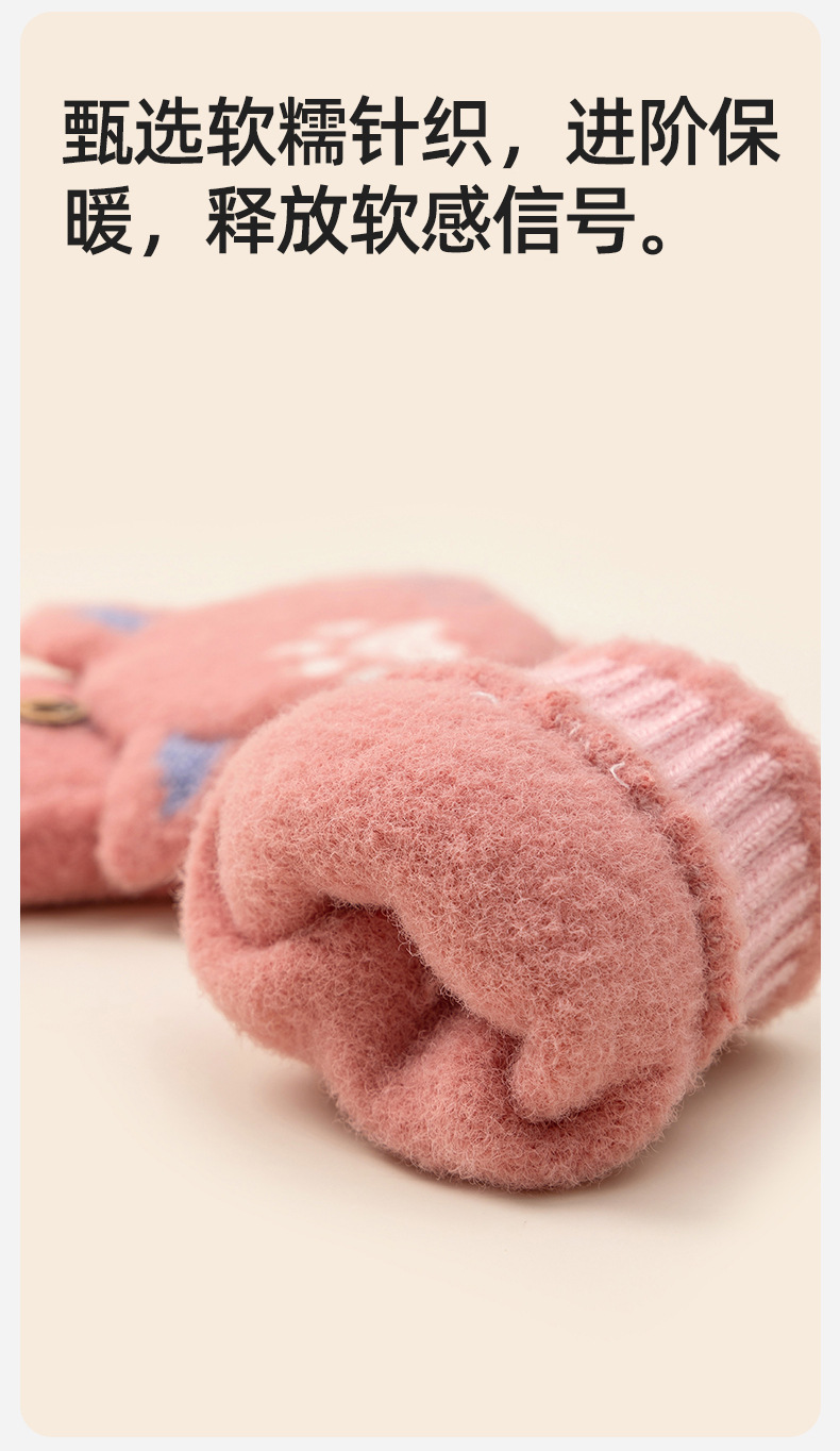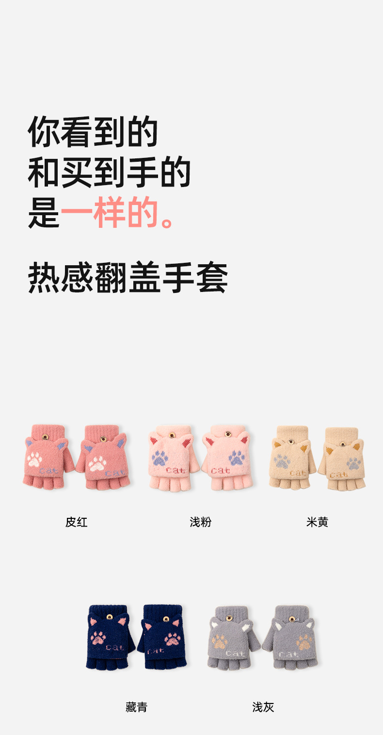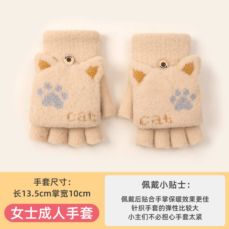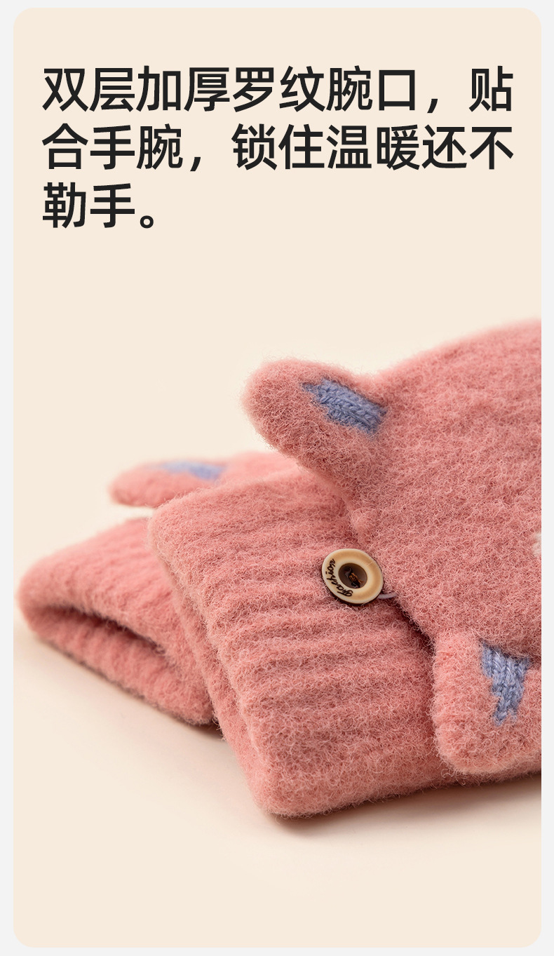 Student Cute Gloves Women's Winter Half Finger Flip Knitted Leaky Finger plus Velvet Thickened Cold-Proof Warm Open Finger Wholesale 中文版