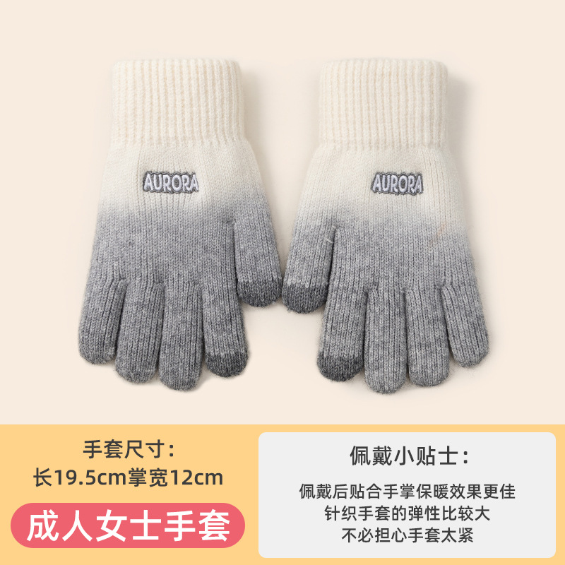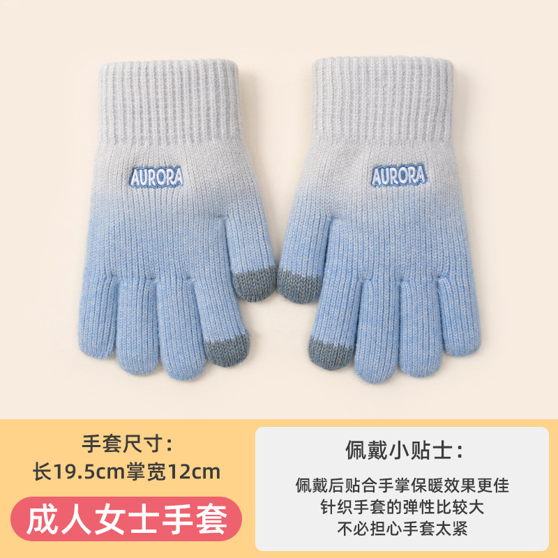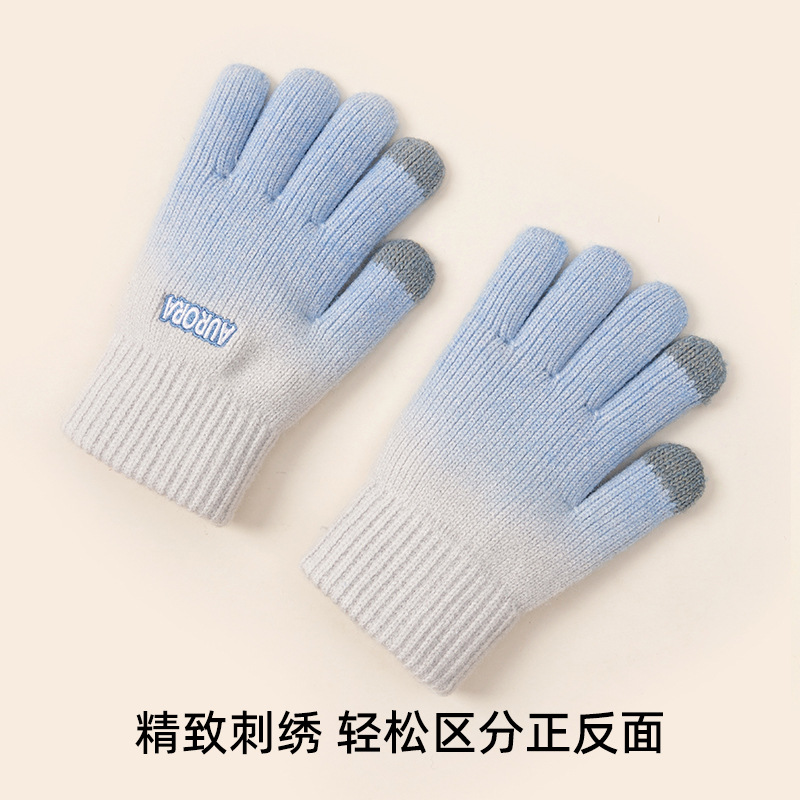 Gradient Wool Keep Warm Gloves Women's Autumn and Winter Students Korean-Style Riding Knitted Five-Finger Cold-Proof Touch Screen Wholesale
