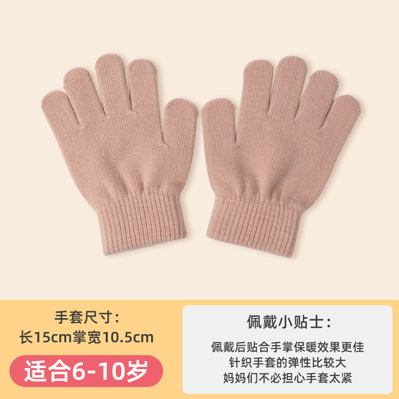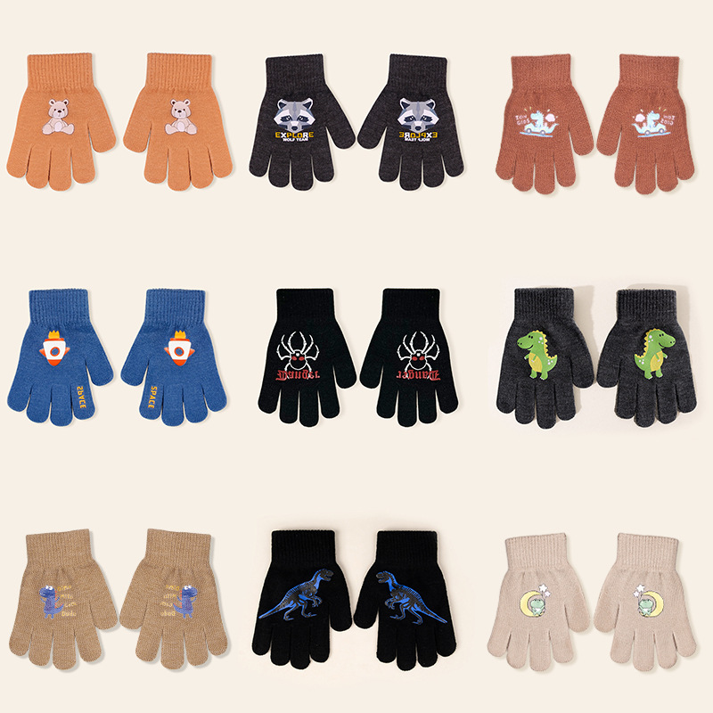 Children's Autumn and Winter Gloves Boys' Five-Finger Cute Thin Knitted Wool Girls' Candy Color Logo Wholesale