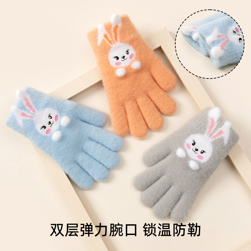 Children's Five Finger Bunny Gloves Girls' Autumn and Winter Cute Cartoon Baby Knitted Wool Cold-Proof Warm Wholesale