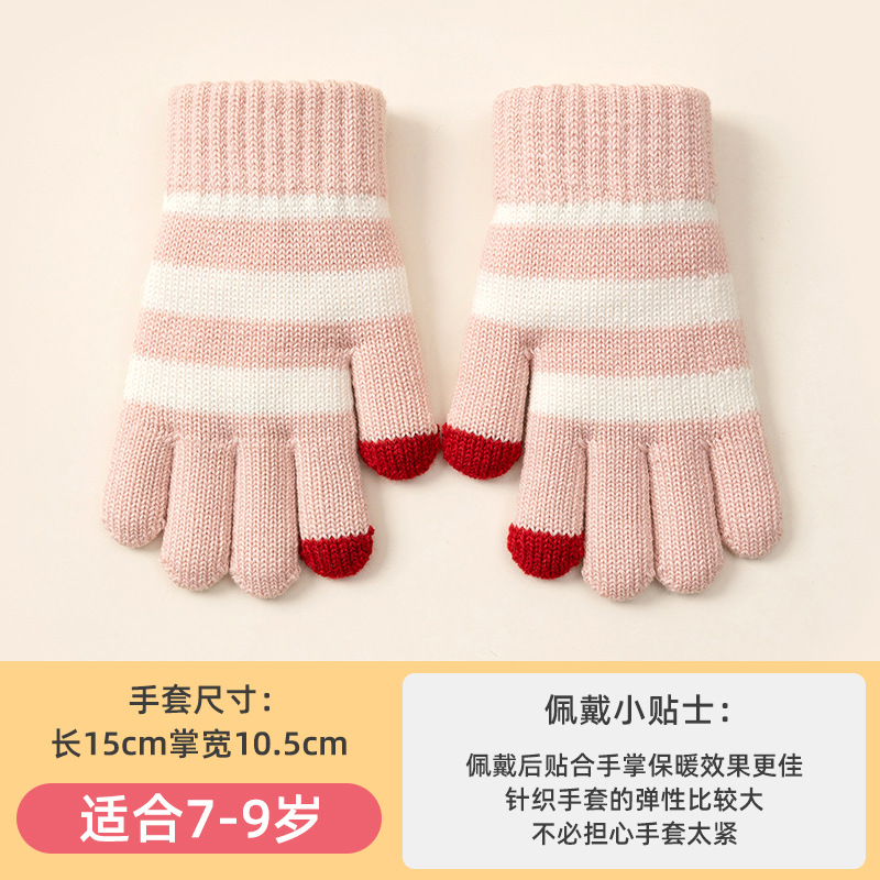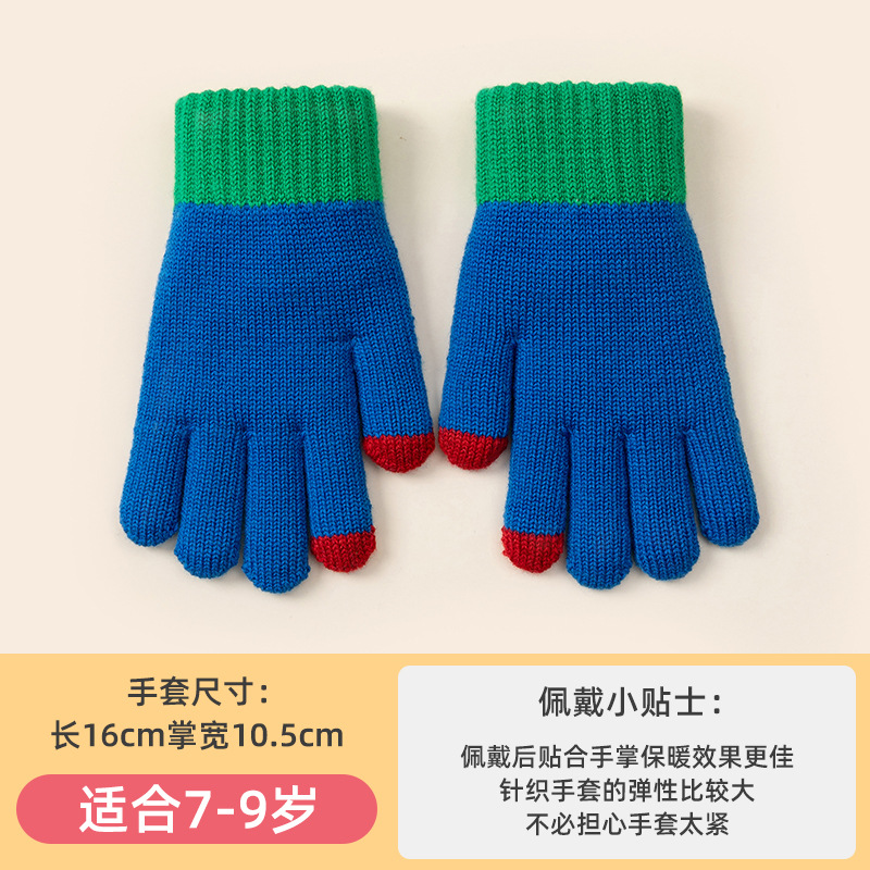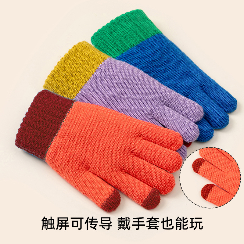 Autumn and Winter Children's Touch Screen Men's Gloves Mernu Wool Knitted Wool Female Students Five Finger Writing Cold-Proof Warm