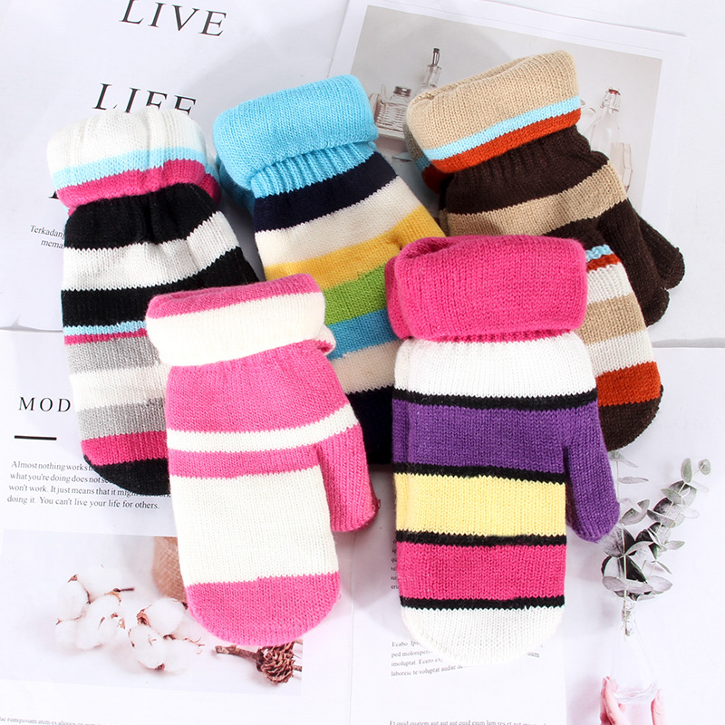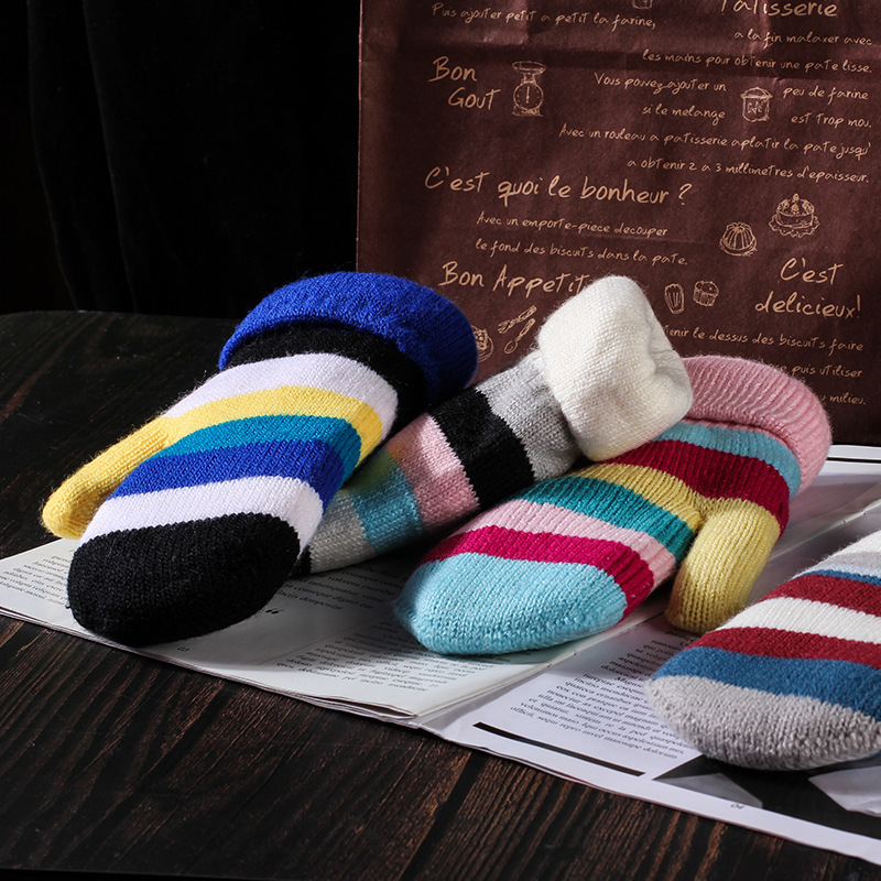 Women's Gloves Winter Bag Double-Layered Bag Finger Thickened Warm Adult Knitted Wool Jacquard Finger in Stock Wholesale