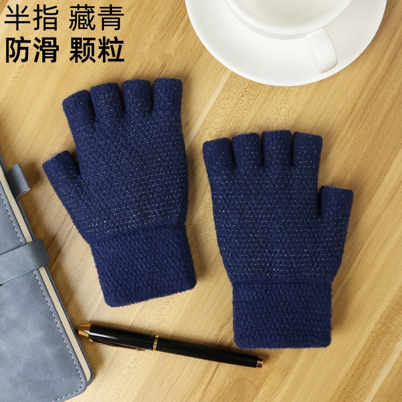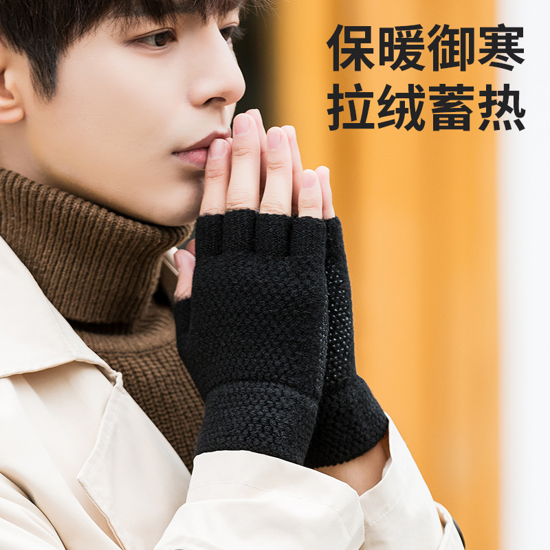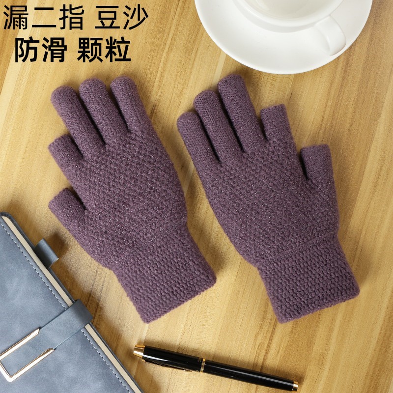 Women's Winter Korean Style Finger Knitted Touch Screen Half Finger Missing Finger Fleece-lined Warm Cycling Cycling Men's Gloves Wholesale