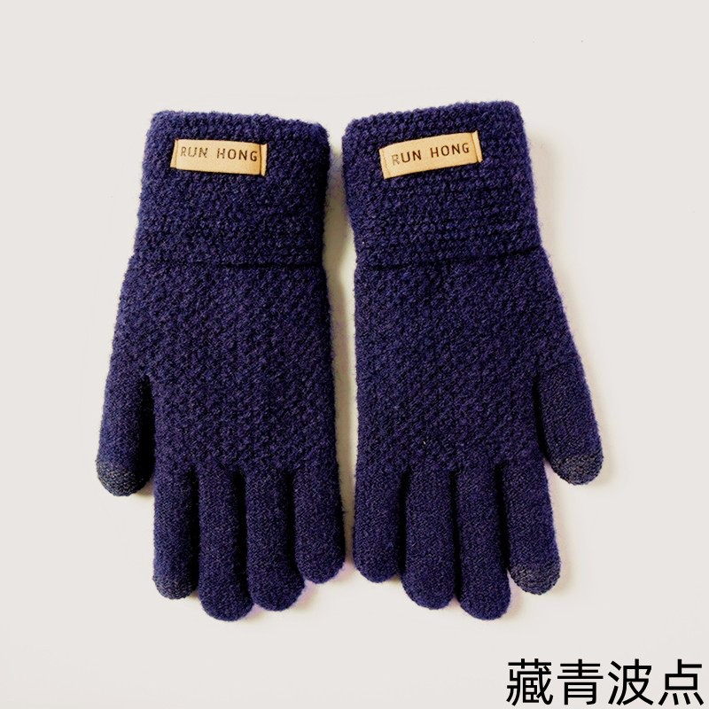 Cross-Border Gloves Men's Winter Finger Thermal Knitting Rice Cold Protection Thickening Touch Screen Fleece-lined Cycling Cycling Gloves Wholesale