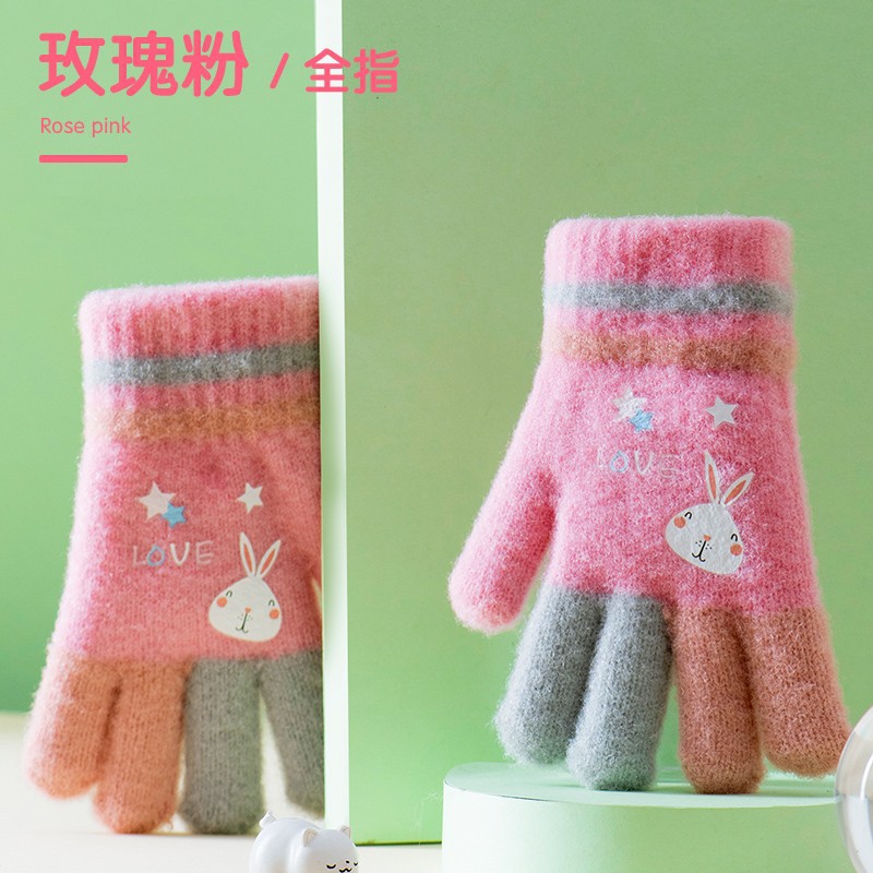 Children's Gloves Winter Children's Five Finger Knitted Cute Open Finger Cold-Proof Warm Girl Writing Wholesale Baby Fleece-lined