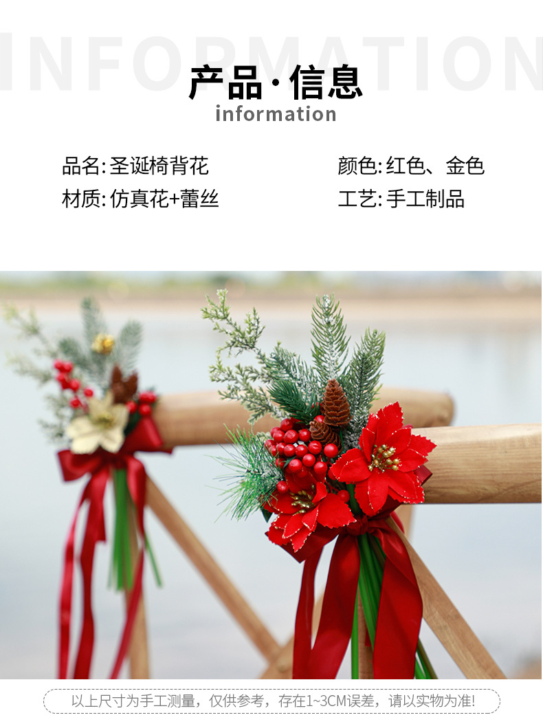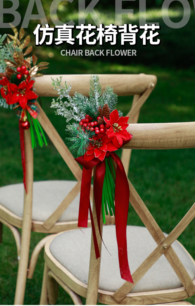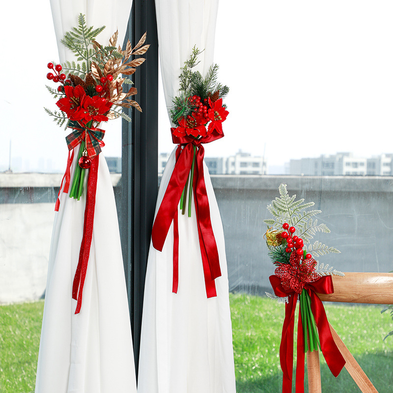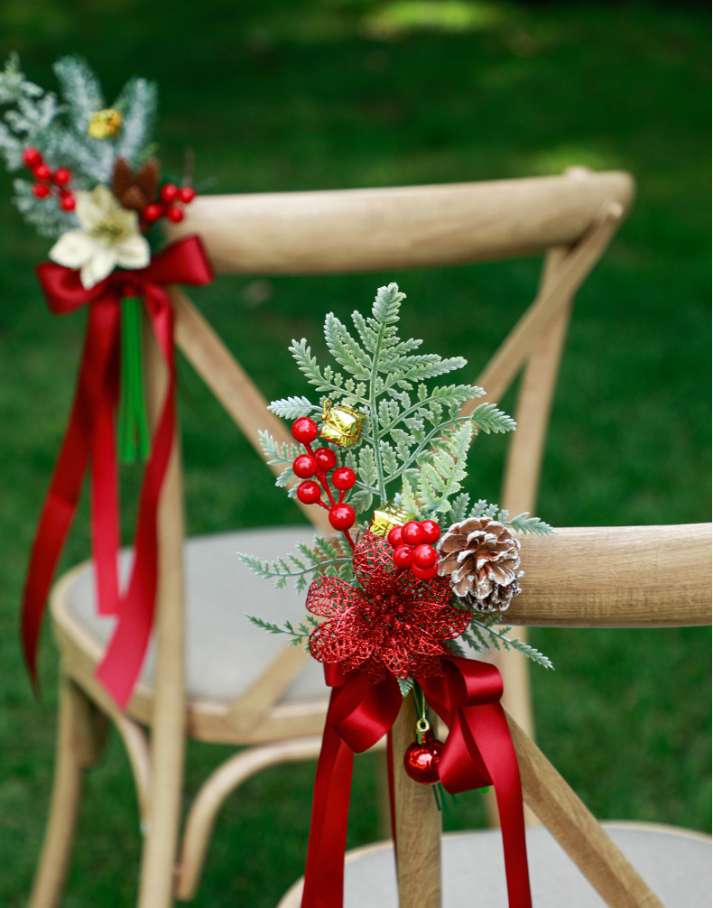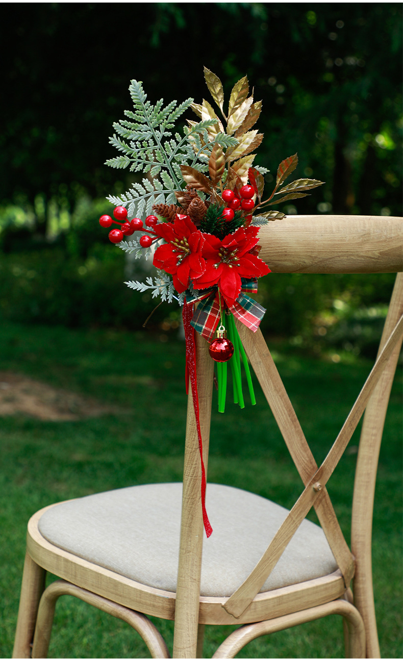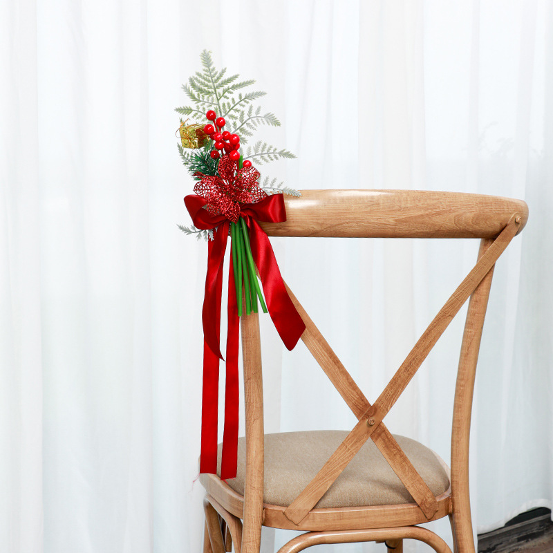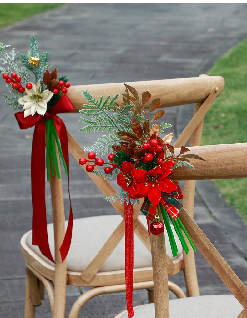 new christmas chair back flowers window decoration christmas home decoration artificial flower finished handle bundle foreign trade christmas decorations 中文版