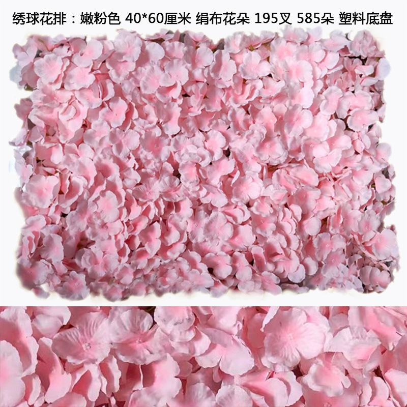 pink and green hydrangea rows