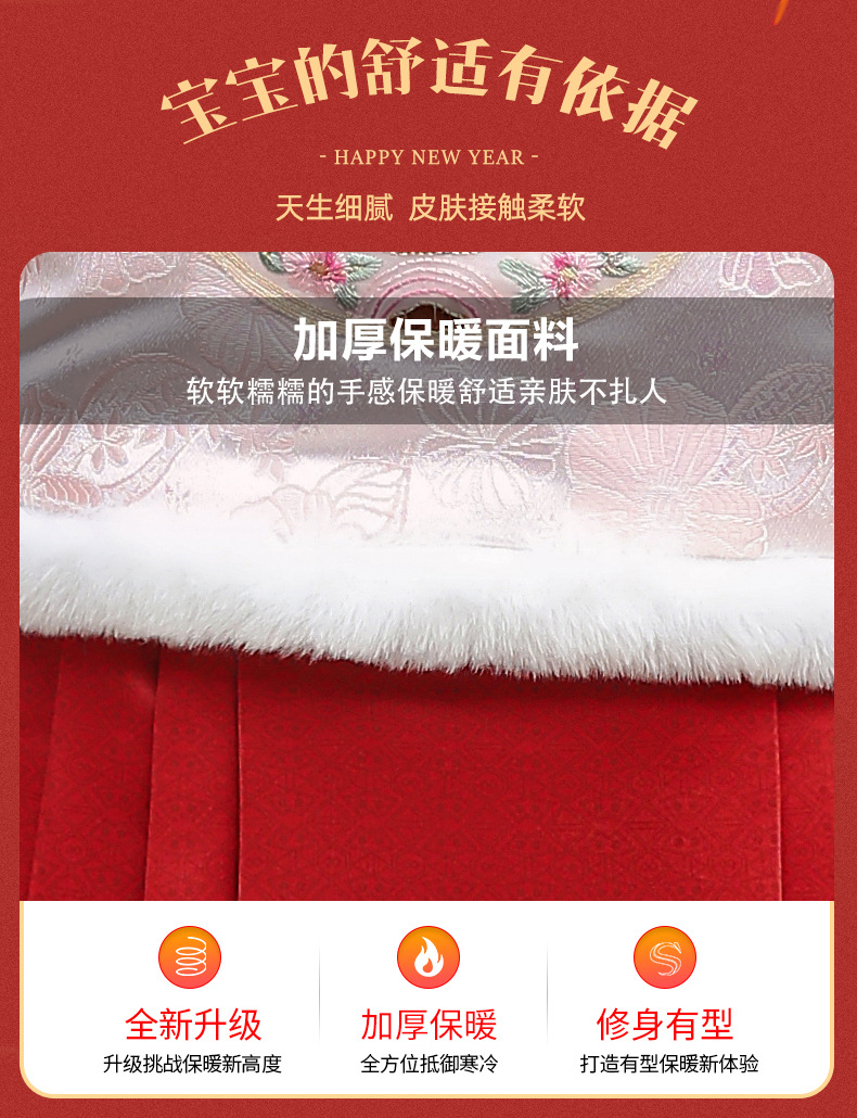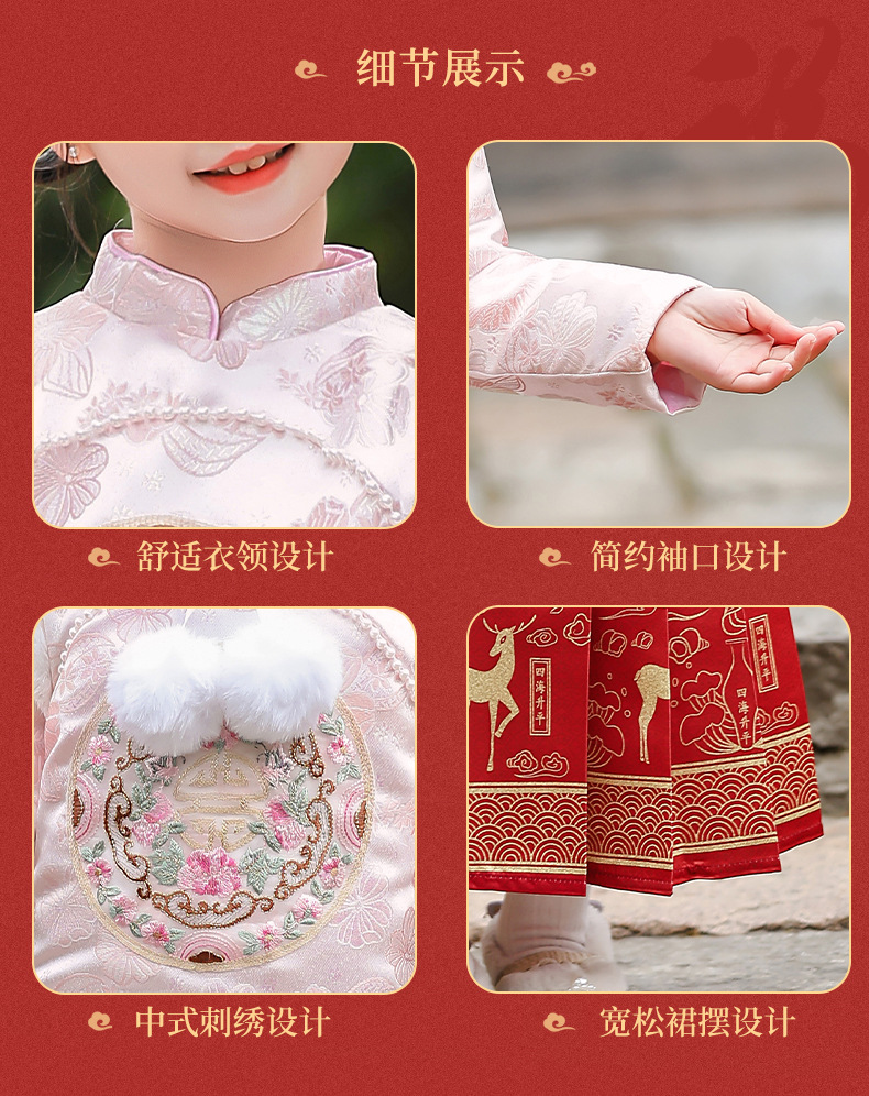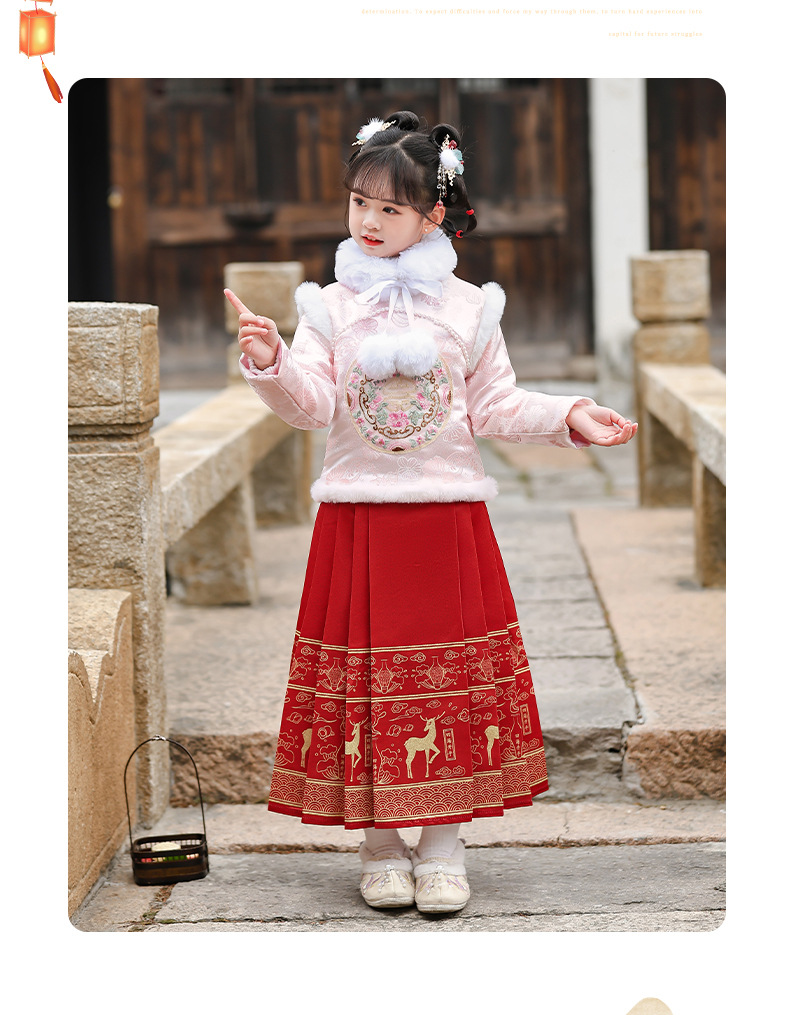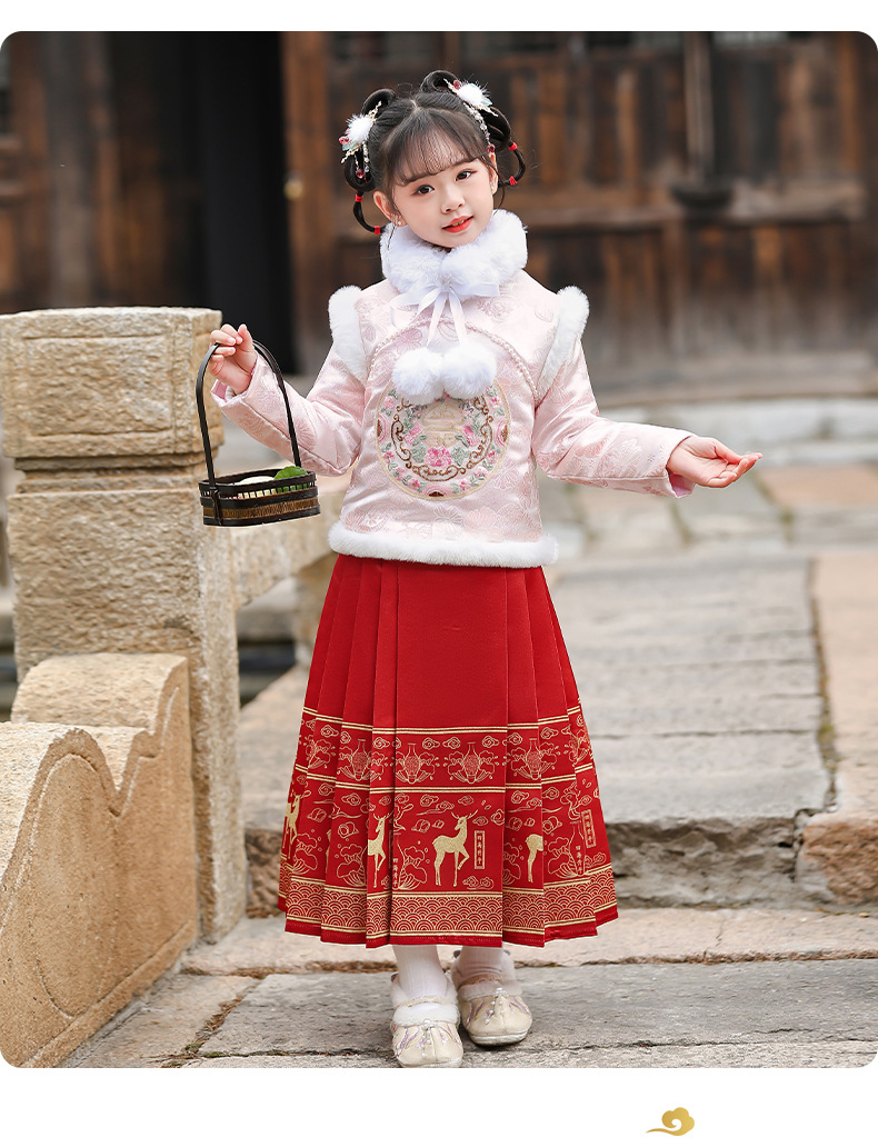 Hanfu Girl 2024 Children's New Thickened Improved Horse-Face Skirt Autumn and Winter New Year Greeting Tang Suit Ancient Style Fleece-Lined Suit 中文版