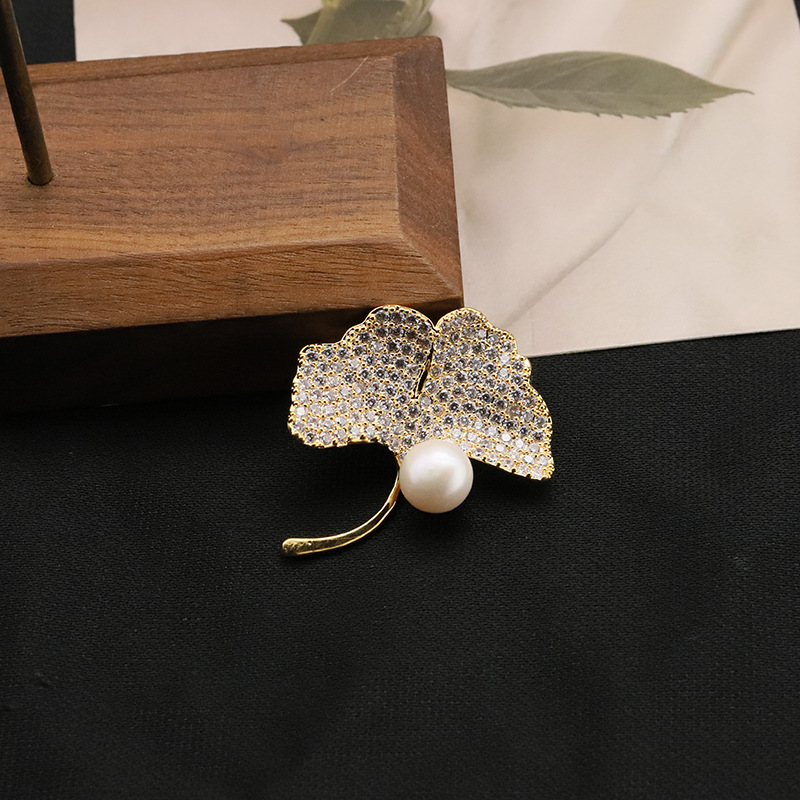 ginkgo leaf pearl brooch