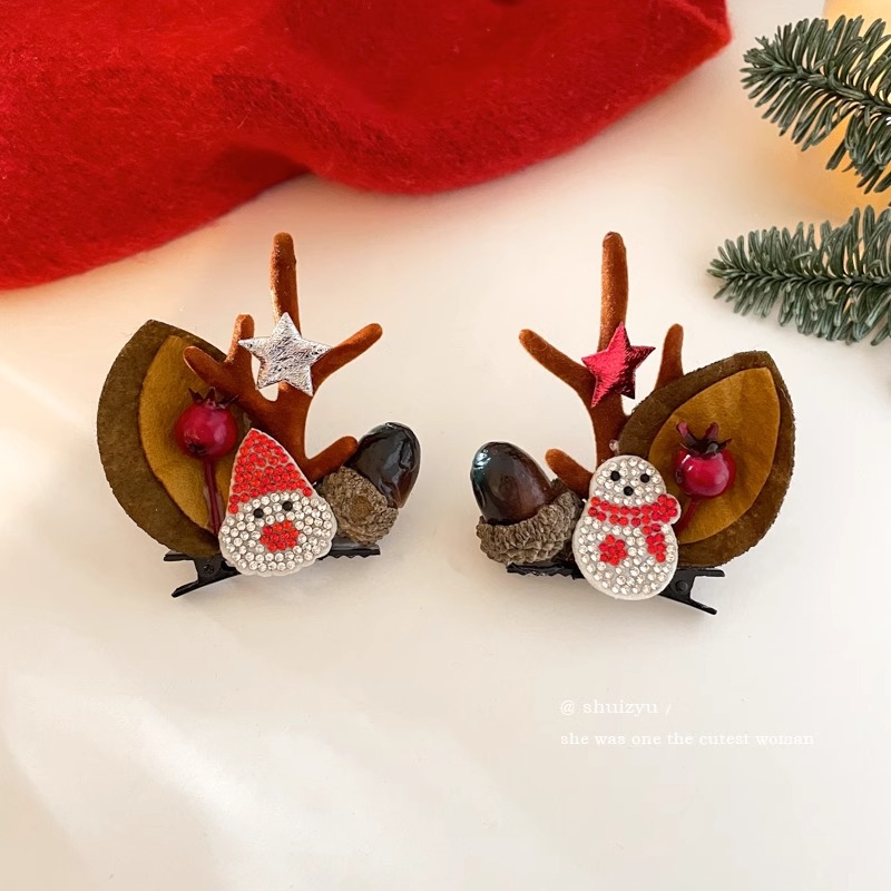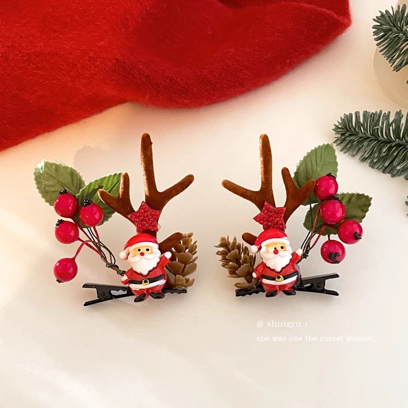 11# pine cone santa claus a pair of hairclips
