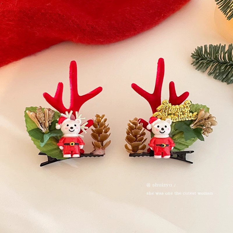 8# christmas bear a pair of hairclips