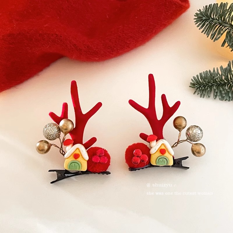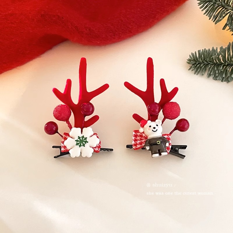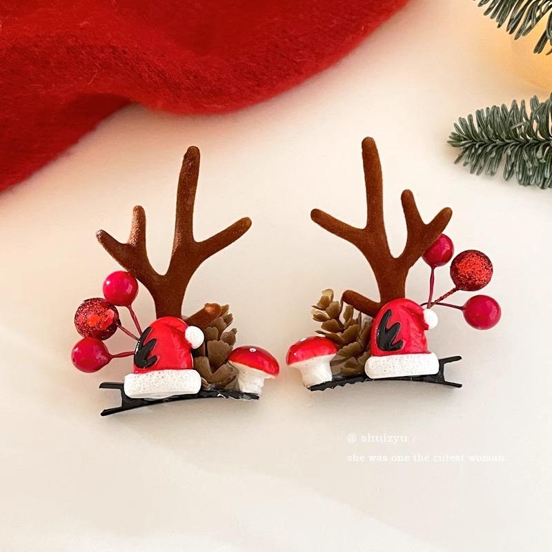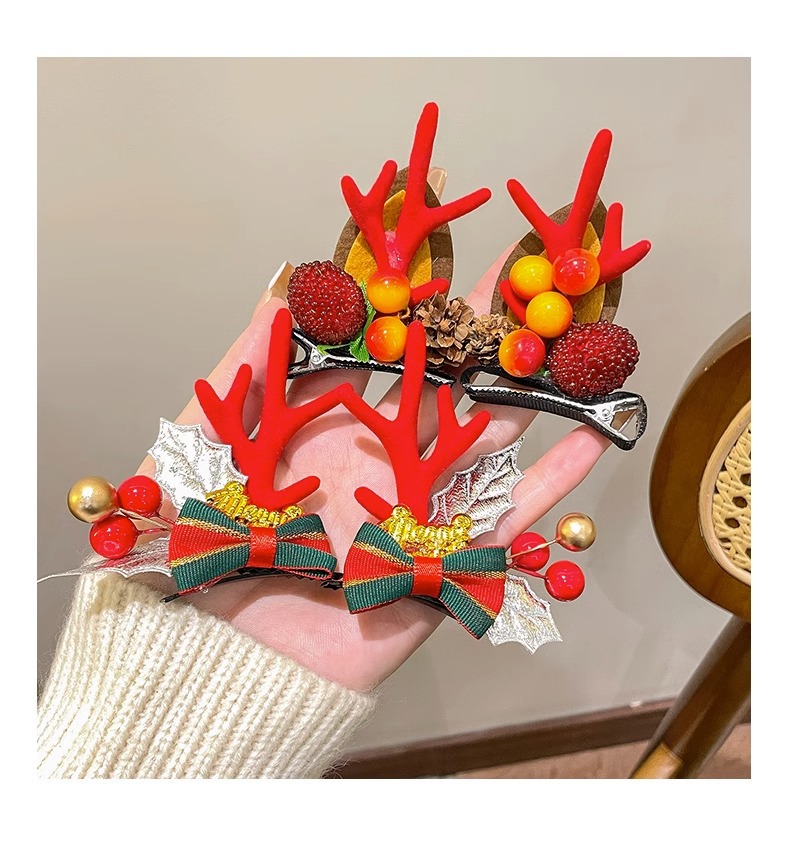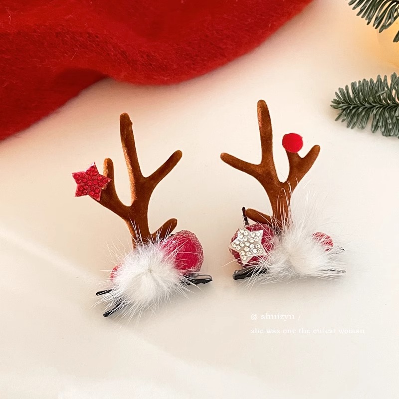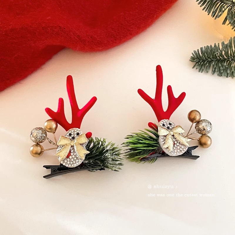 15# red ears antlers barrettes