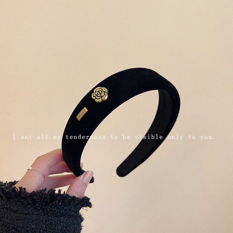 10242g camellia black velvet headband