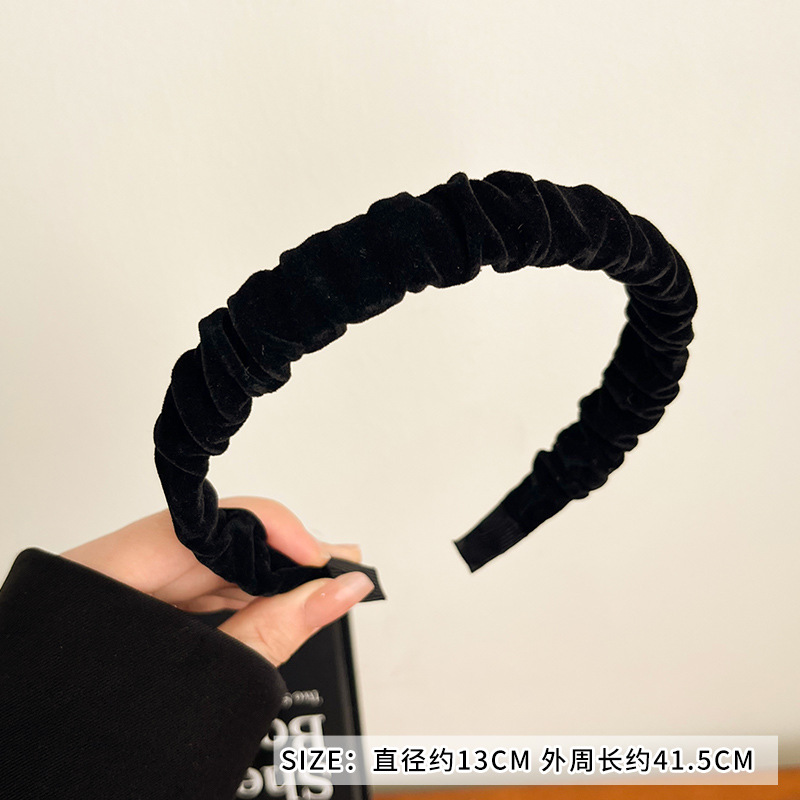 11365a black velvet pleated headband