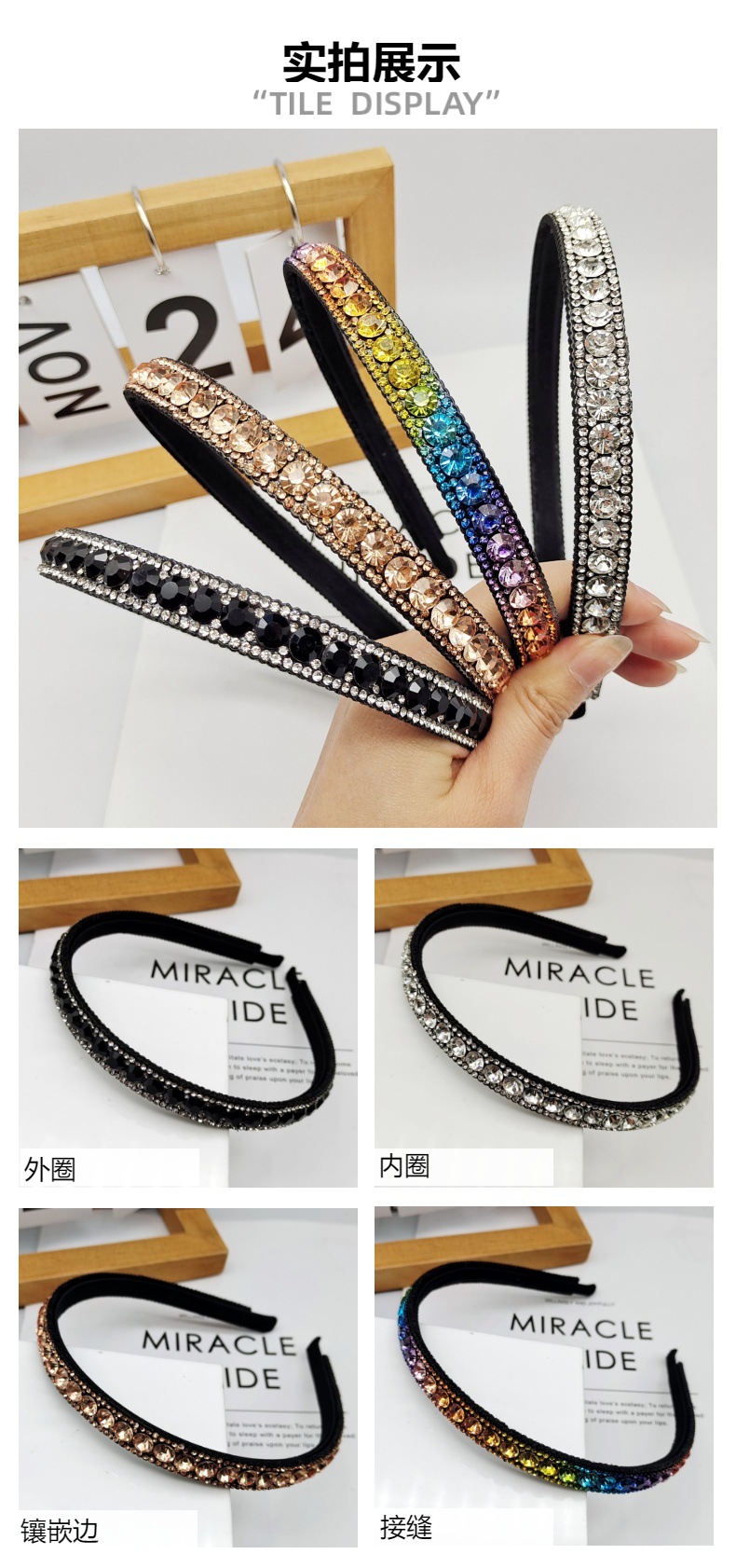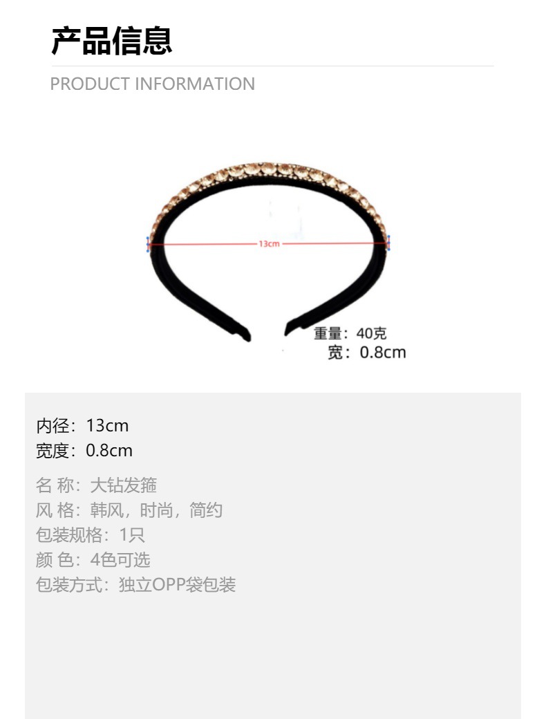 big diamond thin edges rhinestone headband [black]]