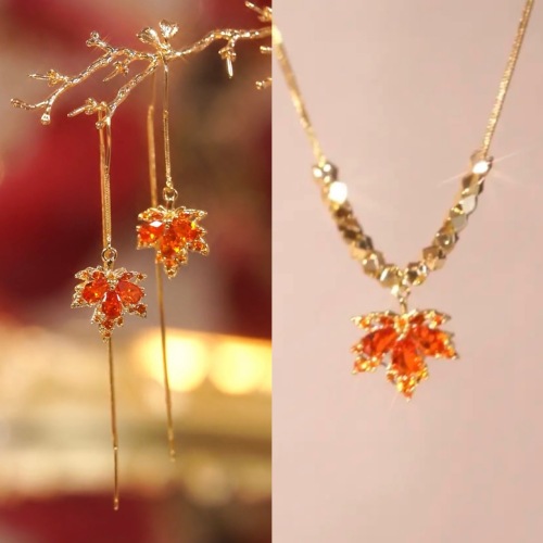 three-piece red maple leaf necklace
