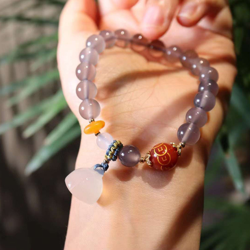 smoke purple agate hanging chalcedony lotus seedpod bracelet
