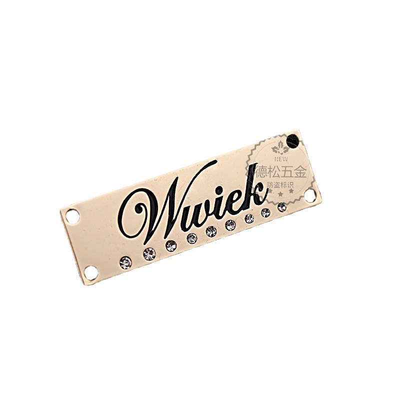 Permanent hand-sewn metal clothing, footwear, and hat labels with holes Electrically plated and die-cast rectangular hooded sweatshirt seam labels