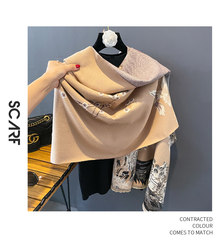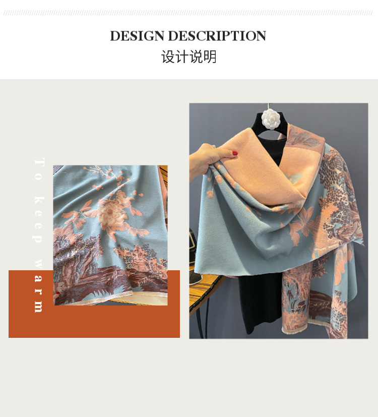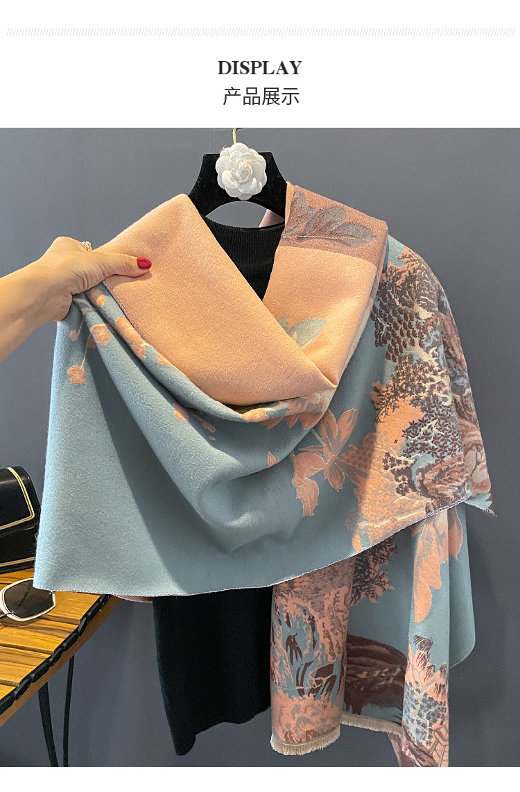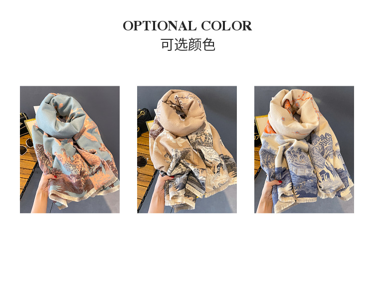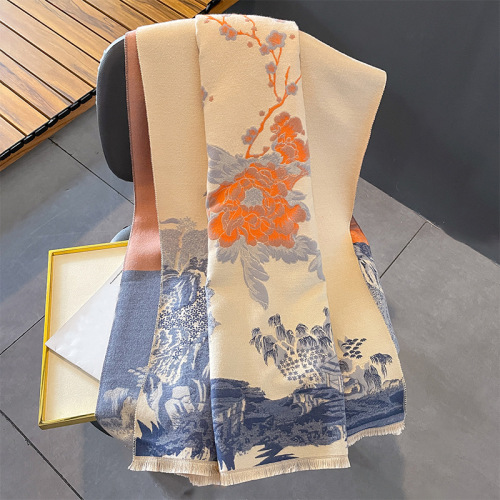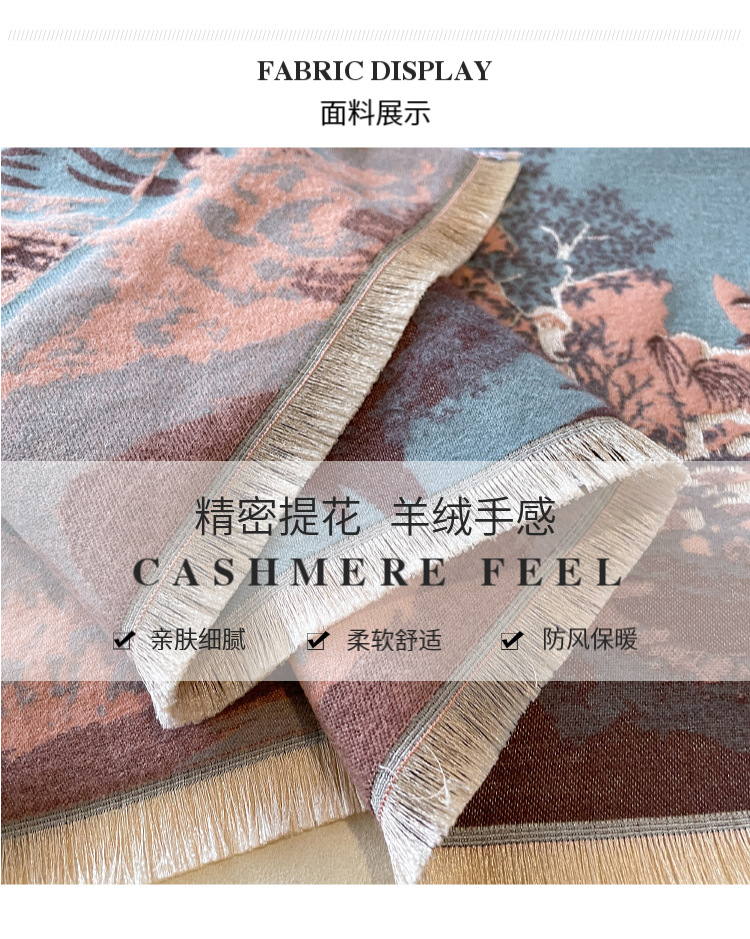 new autumn and winter jacquard artificial cashmere scarf fashion all-match thick warm scarf songshan pavilion elegant shawl for women