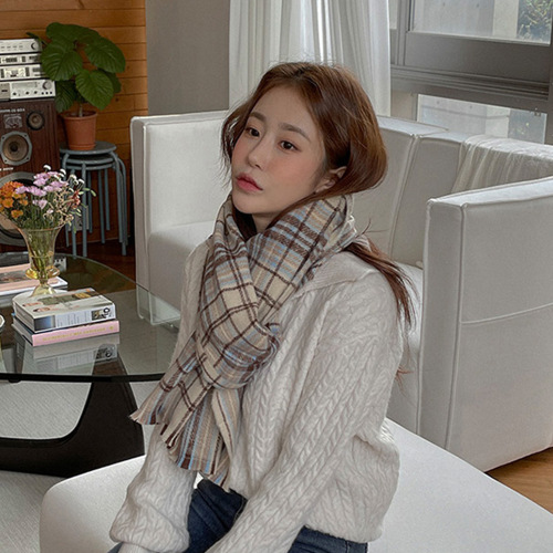 2021 korean new autumn and winter atmosphere warm soft niche retro cashmere plaid scarf long shawl